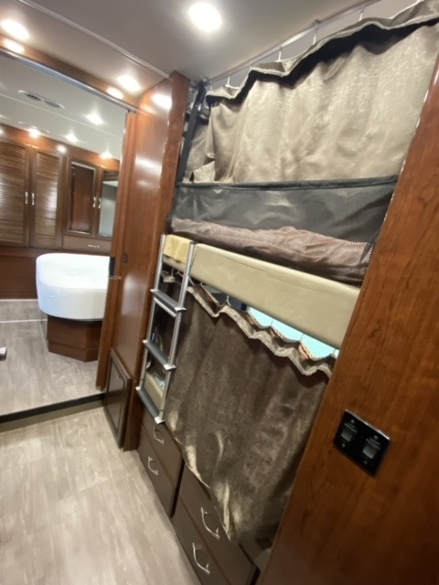 awning, 2 A/C units, a generator, bunk beds, a washer/dryer, an outdoor