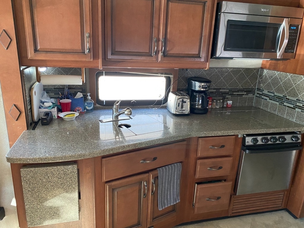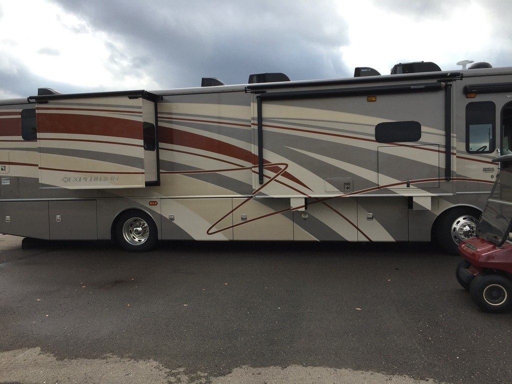 This Class A is powered by a Cummins Diesel Engine, Paired with an Automatic Transmission, with 28,000 Miles. The Overall Length is 35 Feet and Comes Equipped with 3 Slide Out, 2 A/C Units, 1 Power Awning and Plenty of Room to Sleep 6.