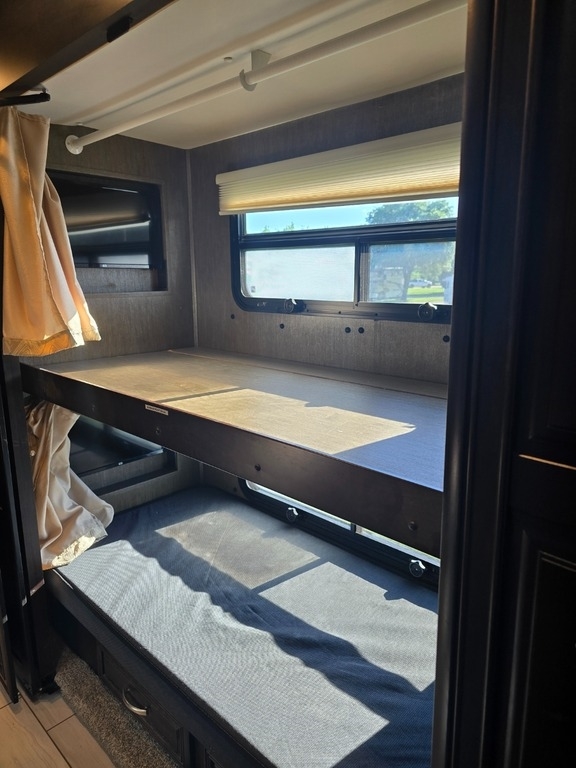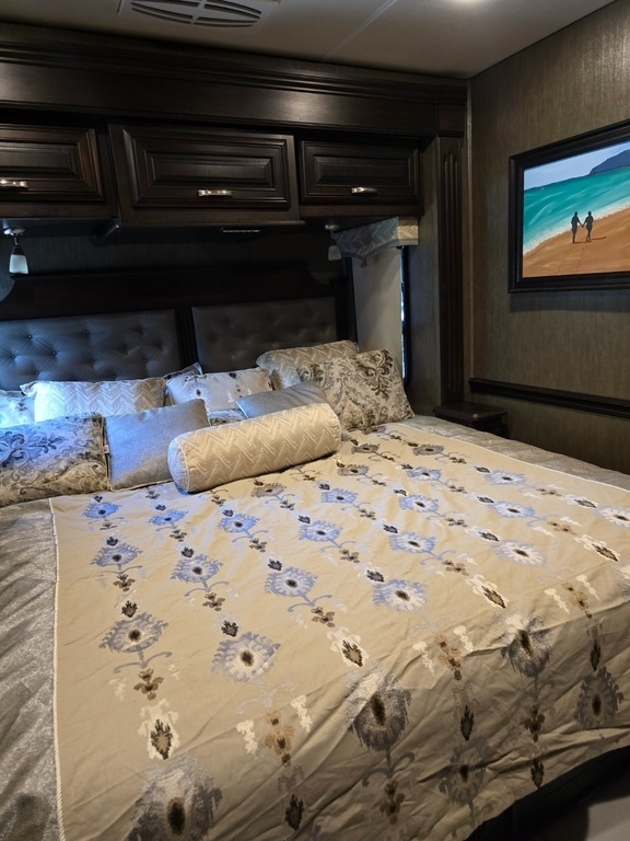 This Berkshire is equipped with an 8.9L I6 diesel engine and a 6-speed automatic transmission, with only 33,792 miles. At 44.58 feet in length, it offers plenty of space with four power retractable slide-outs, two power retractable awnings, two full bathrooms, and three A/C units. With accommodations for up to eight people, this well-maintained unit is ready for your next adventure.