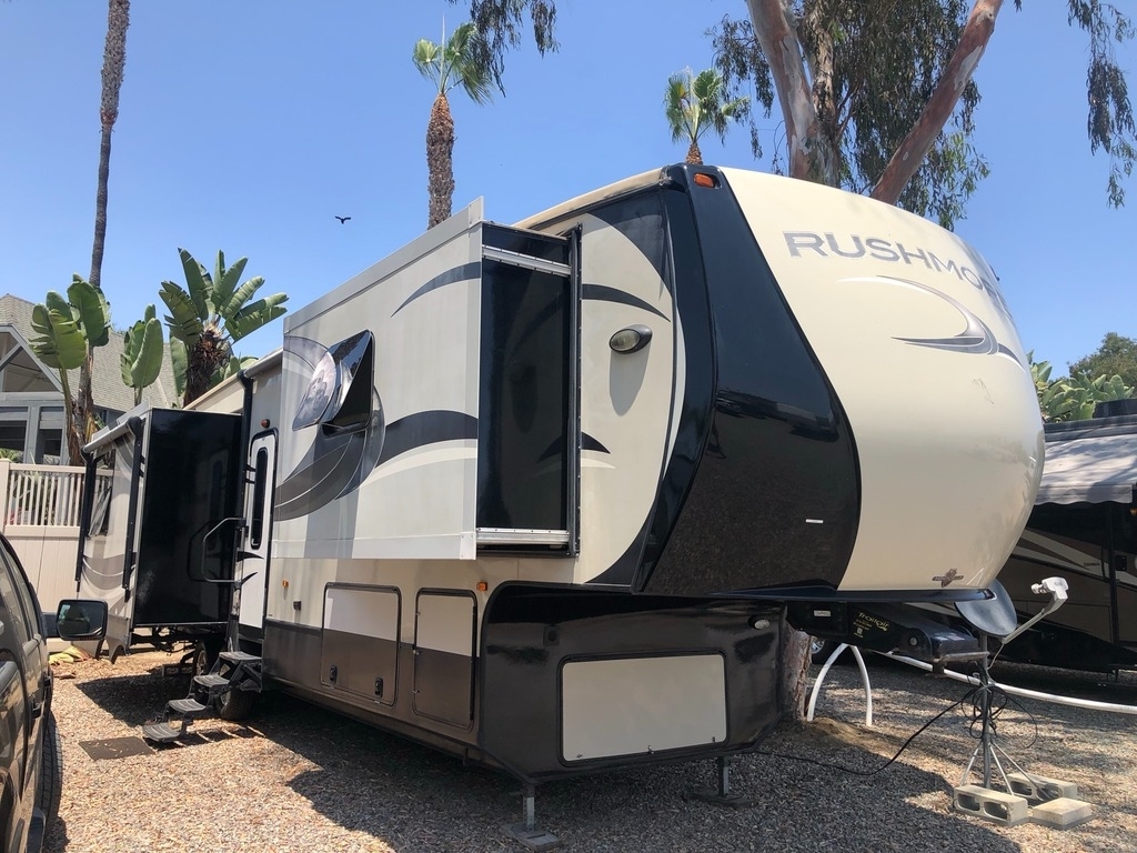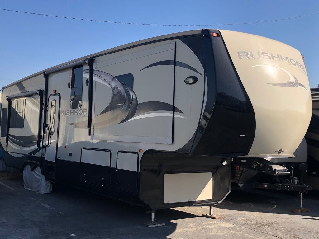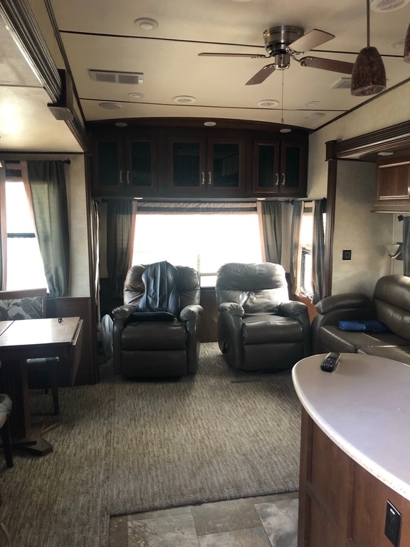 This 2014 Crossroads  Rushmore Monticello has an Overall Length of 37 Feet and Comes Equipped  with 4 Slide Outs, 2 Awnings, 2 A/C Units, and Plenty of Room to Sleep 4. This Fifth  Wheel is Non-Pet/Non-Smoking and has not had any Accidents or Water Damage.