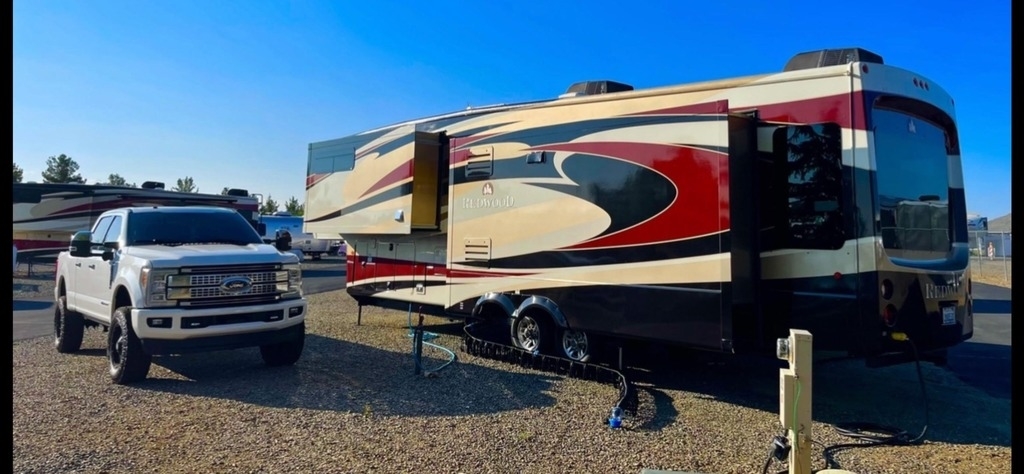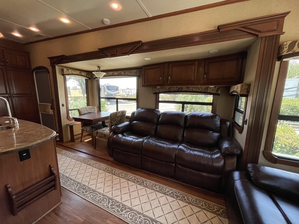 This 2012 Thor Motor Coach Redwood 36RL Fifth Wheel is 38’ long equipped with 3 slide outs, 2 electric awnings, 2 air conditioning units. Great condition with all the luxuries of home.