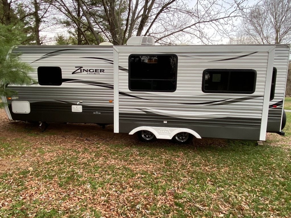 This 2015 CrossRoads Zinger has 28 feet of living space and comes equipped with one 12' Slide Out, one 10' Awning, one A/C unit and room enough to sleep 4-6. With two egress doors, this unique Travel Trailer gives full access to all areas and the fridge with the slide closed. With high ceilings, this RV feels big and boasts close to 100 CF of space.