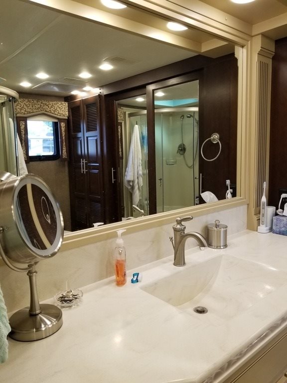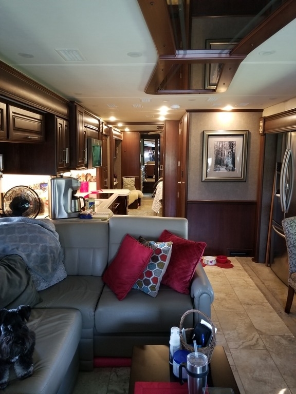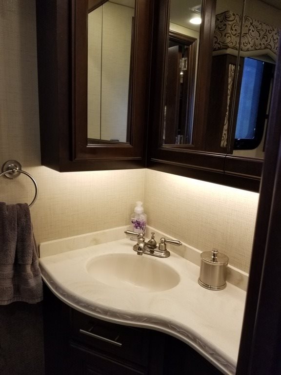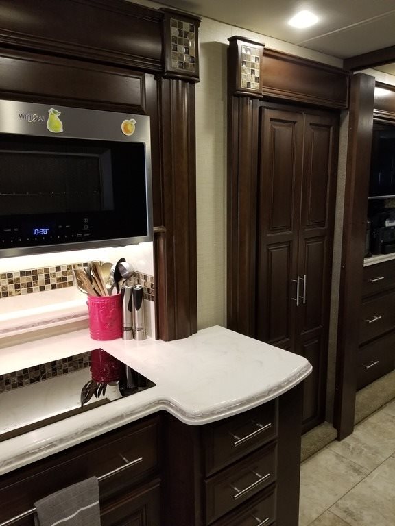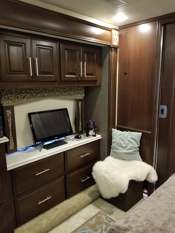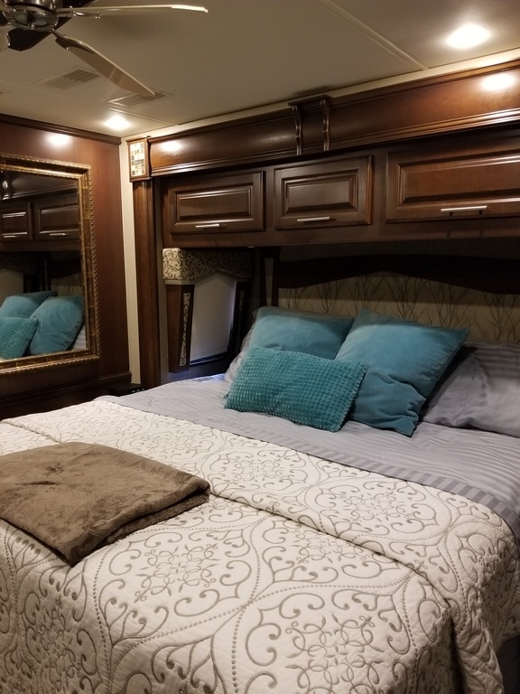 This 2017 Entegra Aspire is powered by a Cummins 450 HP Diesel Pusher Engine combined with a 6-speed Automatic Transmission on a Spartan Chassis, with 19,999 Miles. The overall length is 45 feet and comes equipped with a Generator, 4 Slide Outs, 2 Awnings, 3 A/C units and plenty of room to sleep 4.