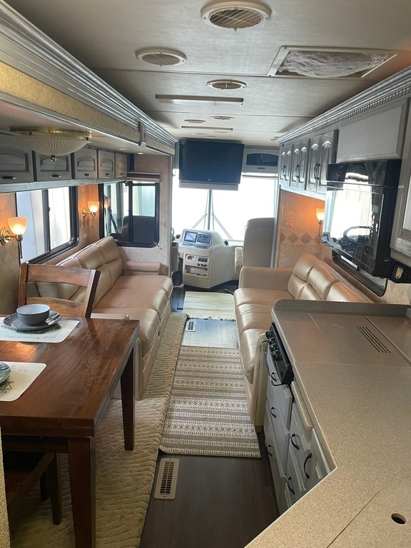 it comes equipped with 4 power retractable slide-outs, 1 awning, 2 A/C units, a