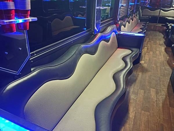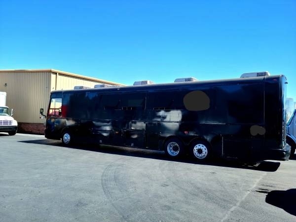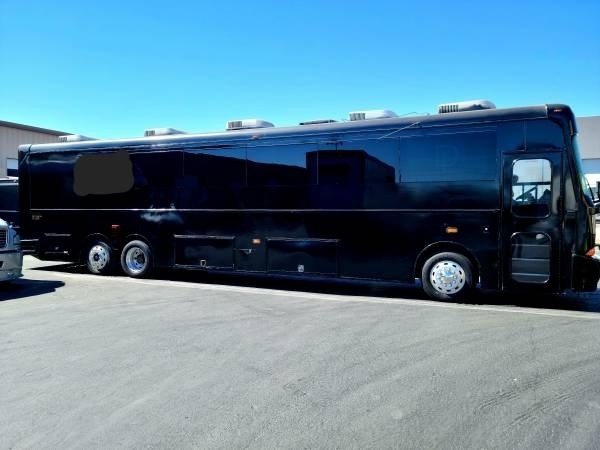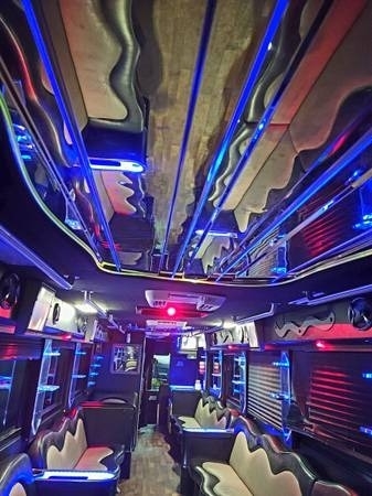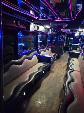 This â08 Freightliner Limousine Party Bus is powered by a Cummings 6.0L Engine, paired with a 5-Speed Automatic Transmission. Shown in a Black Exterior with a Silver and Black Interior, this 60' Bus has been kept Non-Smoking, Non-Pet, and Seats 55 Passengers.