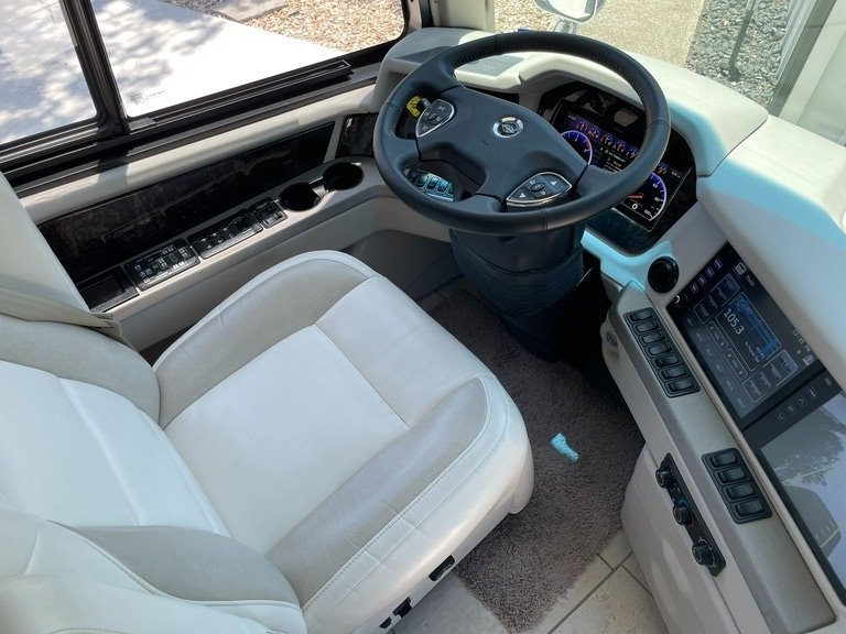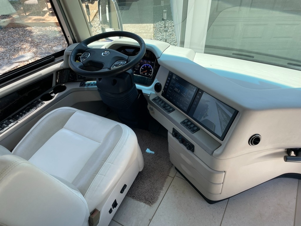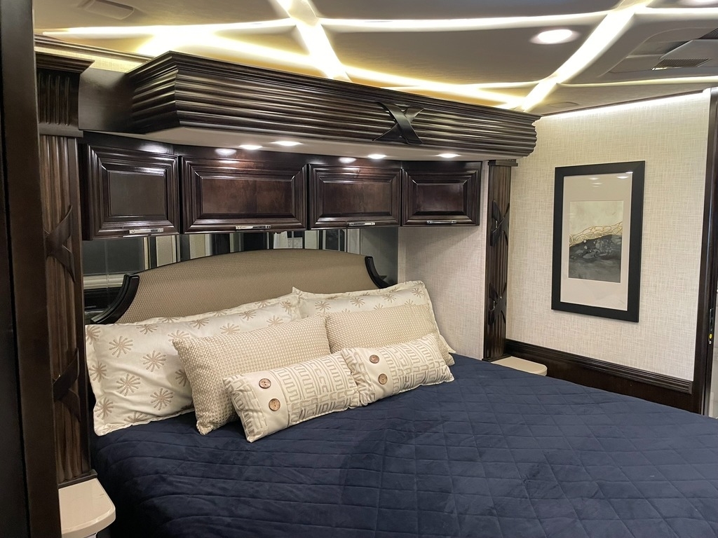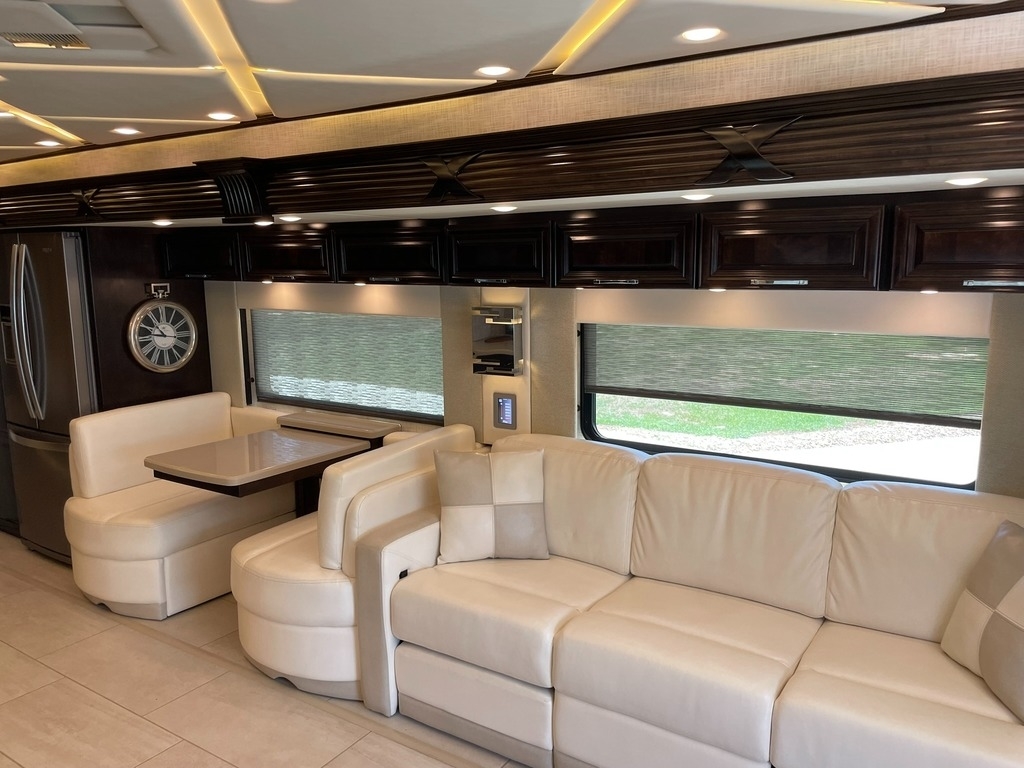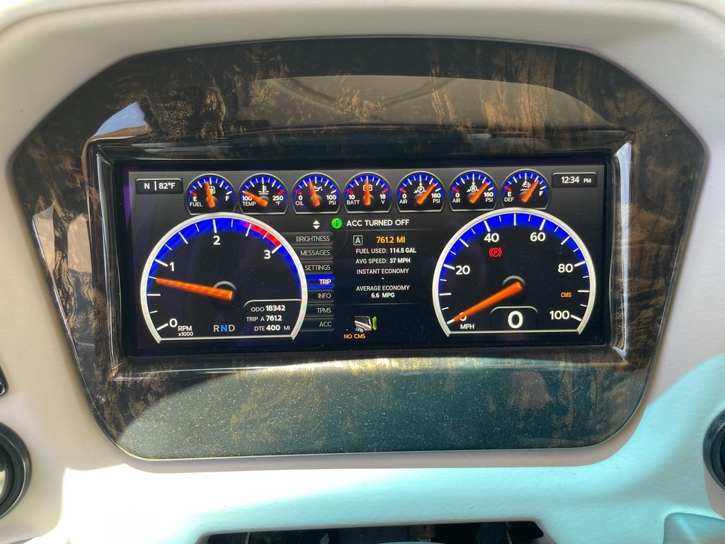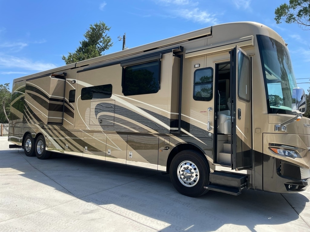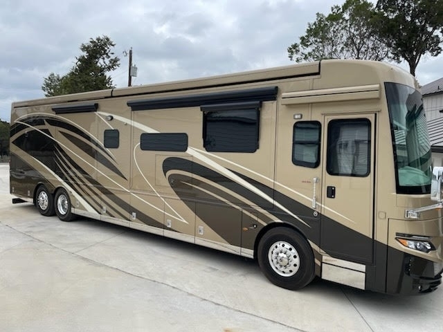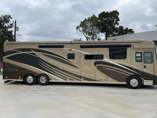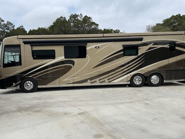 This Newmar is powered by an 11.8L I6 diesel engine and a 6-speed automatic transmission with 18,342 miles. The overall length is 44.83 feet and comes equipped with 3 power retractable slide-outs, 2 power retractable awnings, 3 A/C units, a generator, 1½ baths, a washer & dryer, an outdoor entertainment system, and room to sleep up to 8. This unit has been well-maintained.