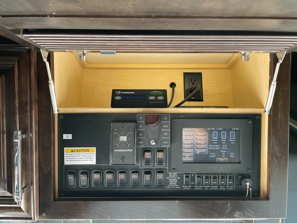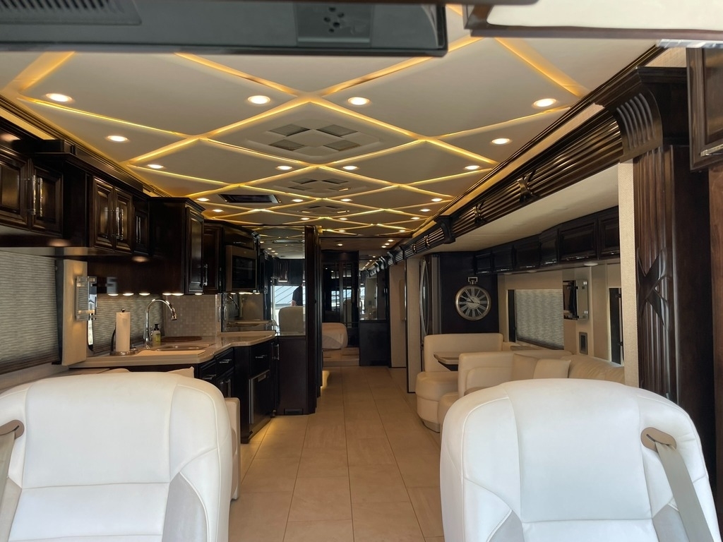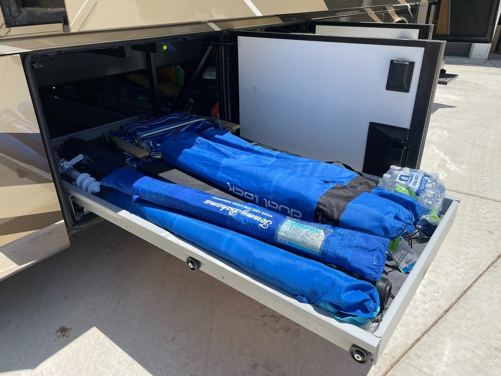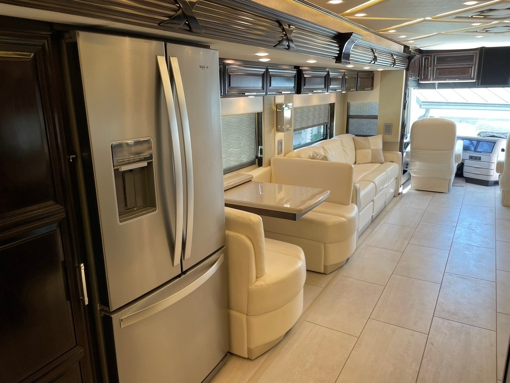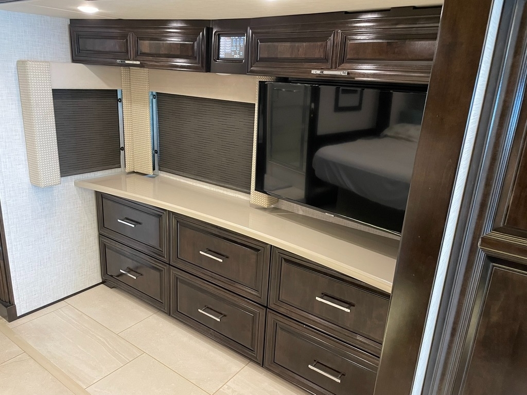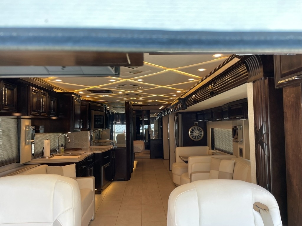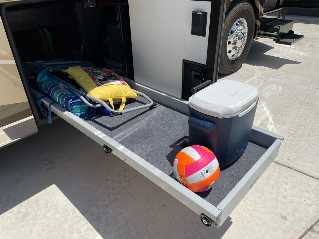 This Newmar is powered by an 11.8L I6 diesel engine and a 6-speed automatic transmission with 18,342 miles. The overall length is 44.83 feet and comes equipped with 3 power retractable slide-outs, 2 power retractable awnings, 3 A/C units, a generator, 1½ baths, a washer & dryer, an outdoor entertainment system, and room to sleep up to 8. This unit has been well-maintained.