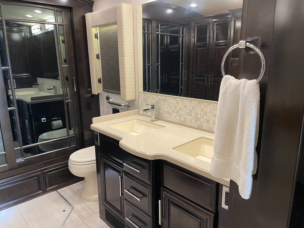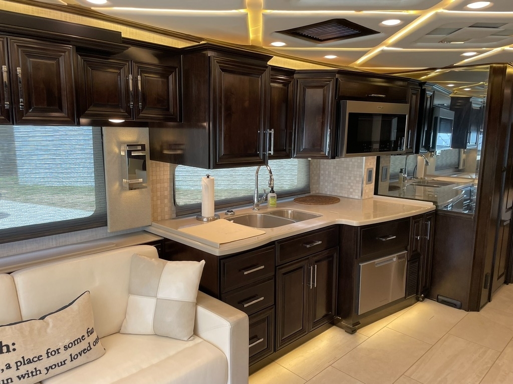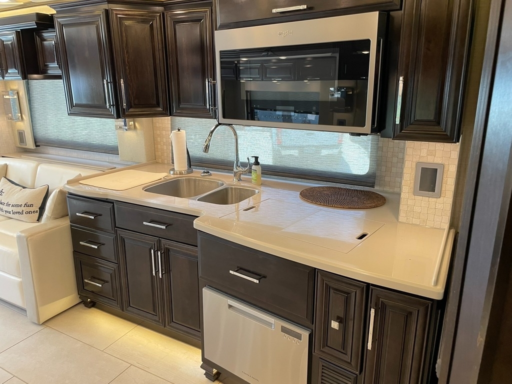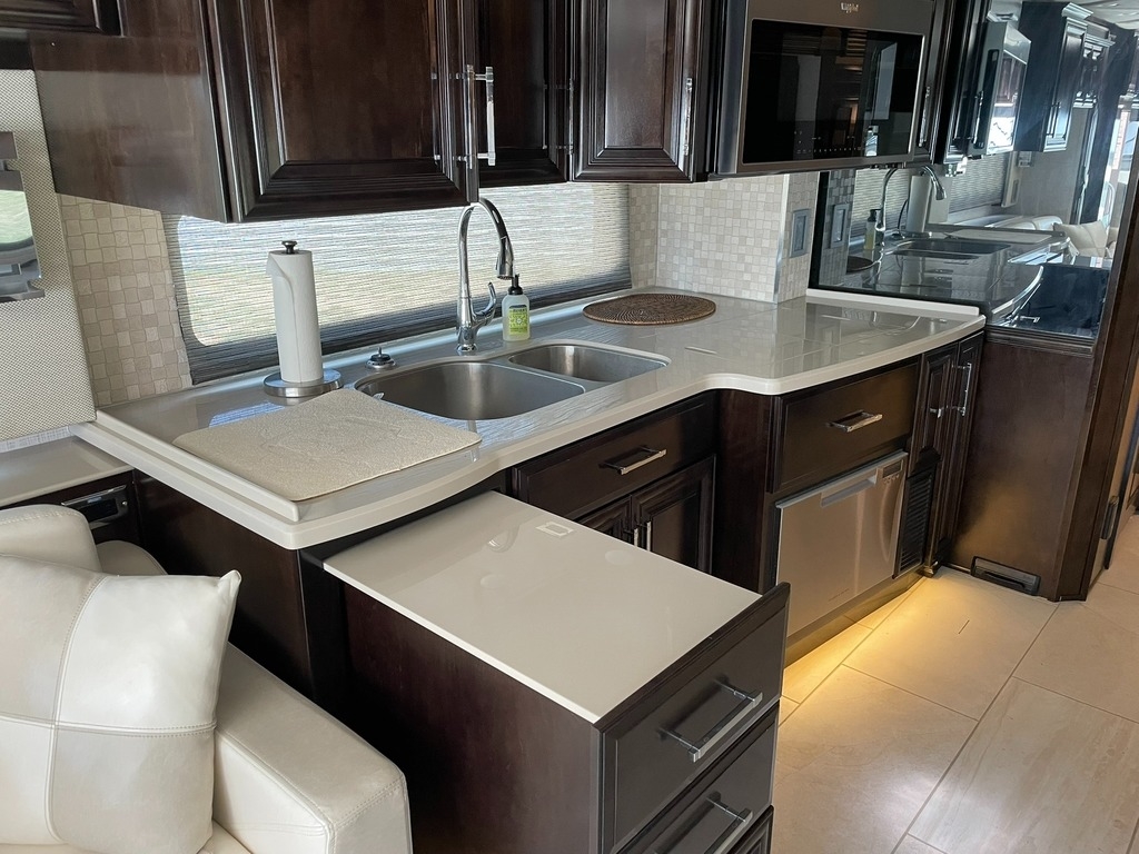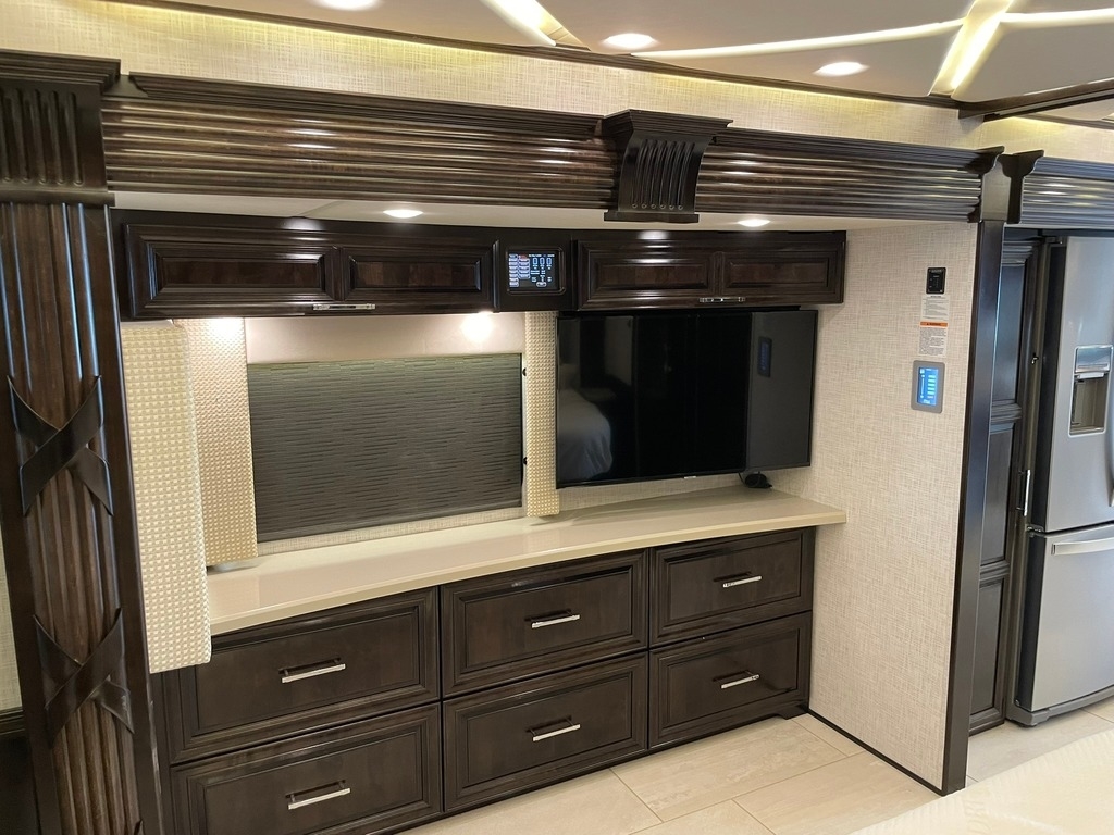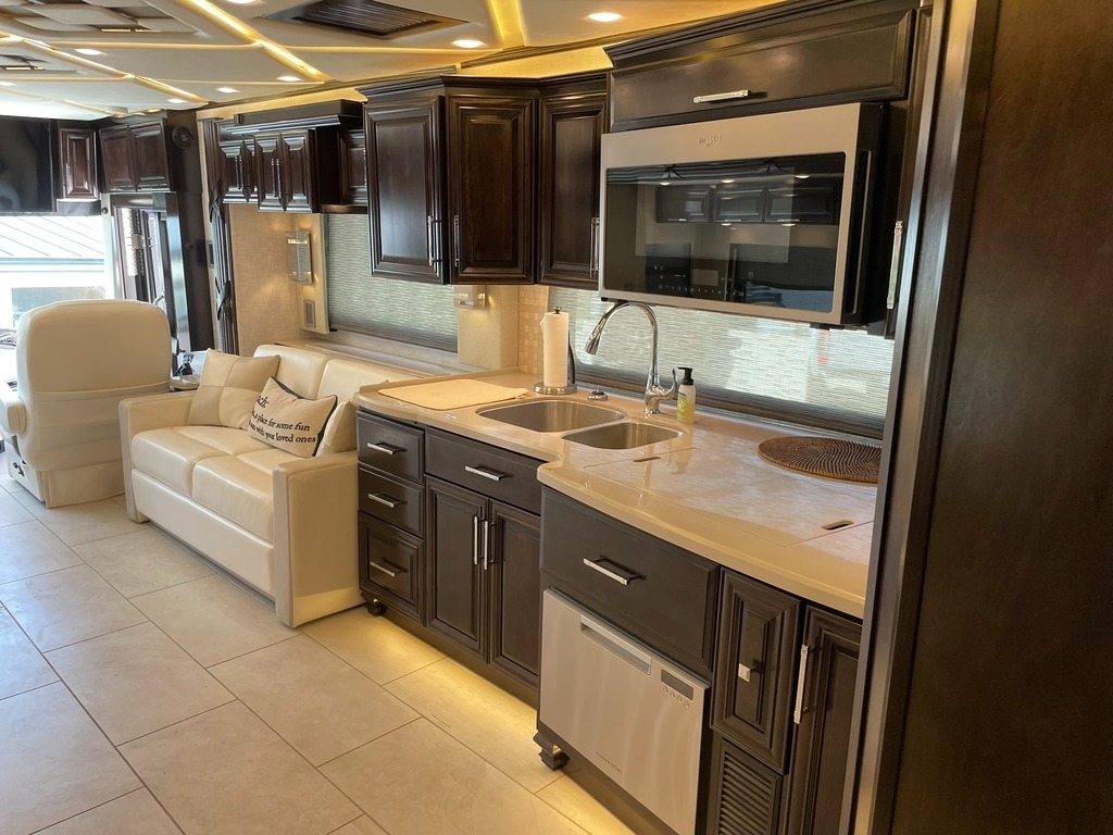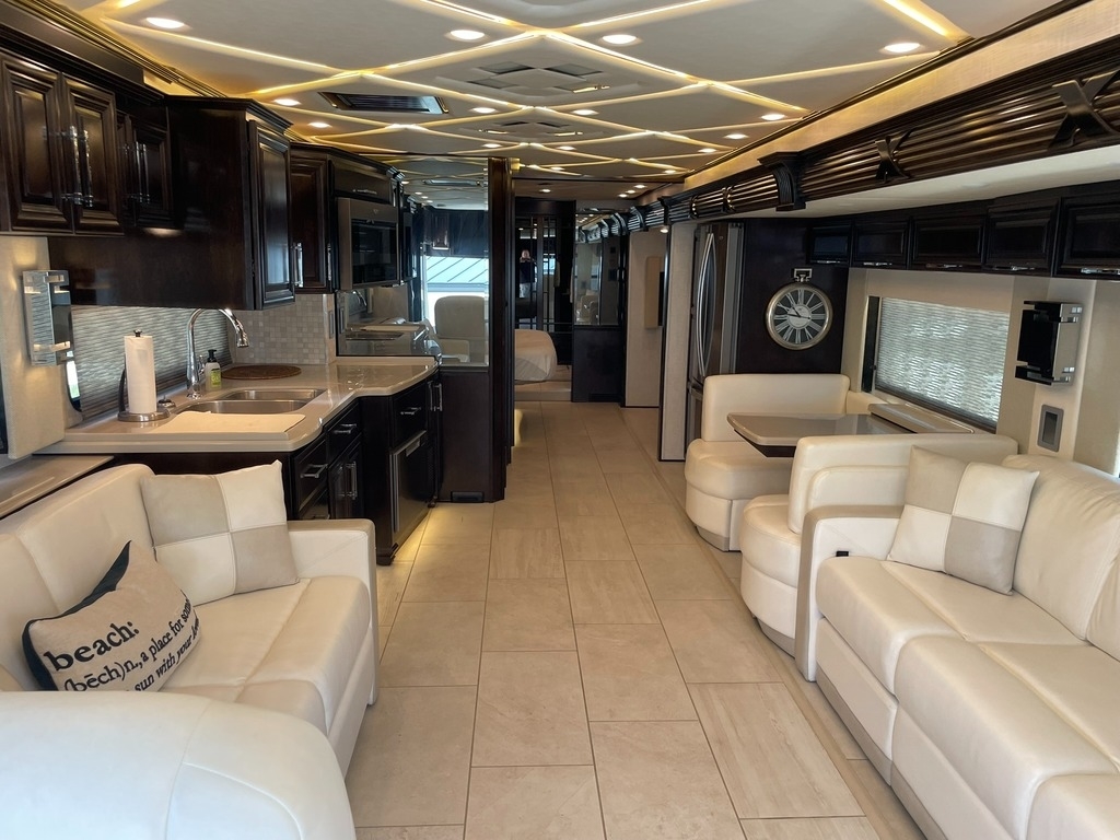 This Newmar is powered by an 11.8L I6 diesel engine and a 6-speed automatic transmission with 18,342 miles. The overall length is 44.83 feet and comes equipped with 3 power retractable slide-outs, 2 power retractable awnings, 3 A/C units, a generator, 1½ baths, a washer & dryer, an outdoor entertainment system, and room to sleep up to 8. This unit has been well-maintained.