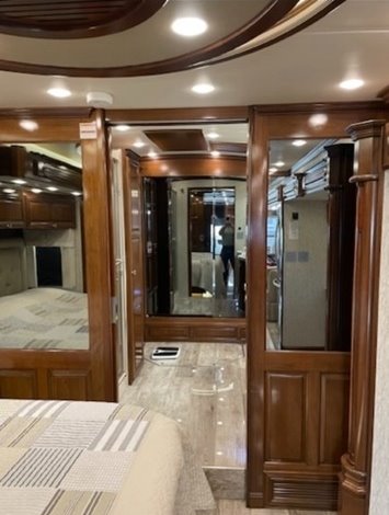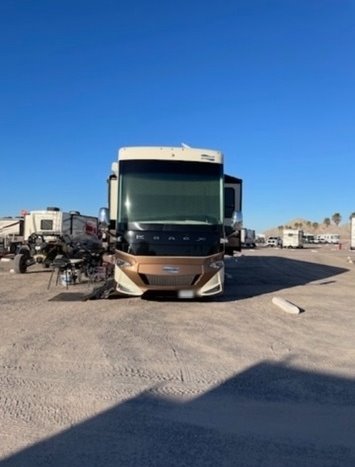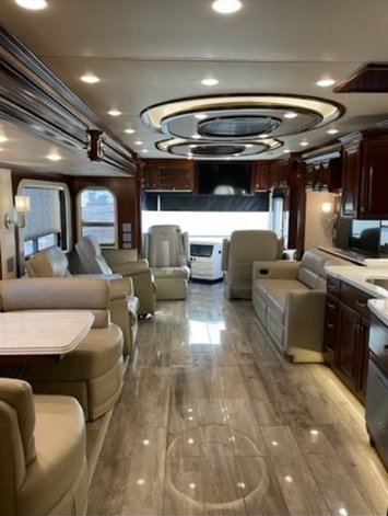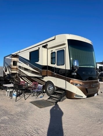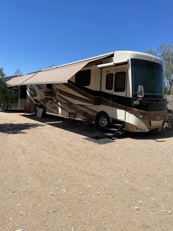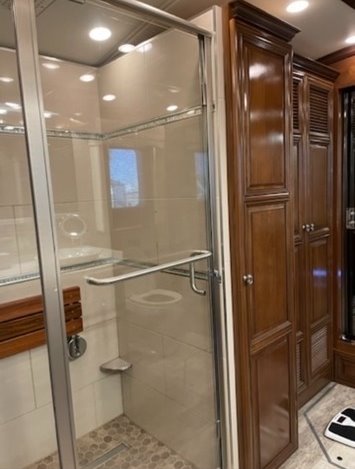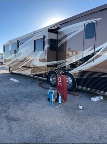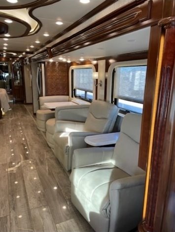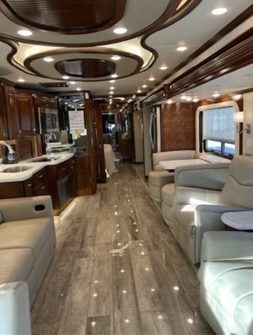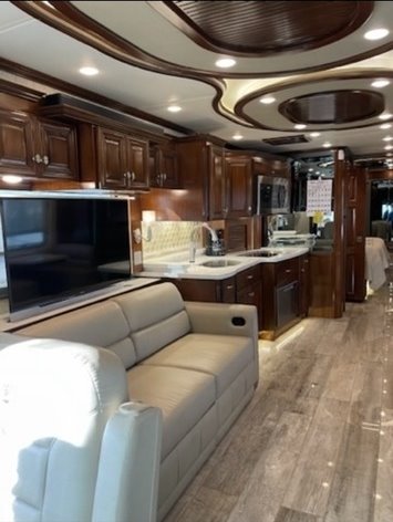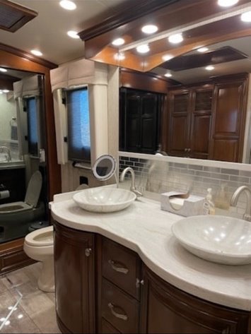 “House AGM batteries 2023. Engine batteries 2023. Tires 2023. Bath and half, dishwasher, washer/dryer, whirlpool full-size fridge/freezer with ice maker, GE convection oven, induction cooktop. All services done every 10,000 miles. Oasis hydronic heating service including coolant 2023, roof resealed 2024, front AC replaced 2024. 6-year transferable extended warranty. We are full-time RVers and this coach is very well looked after. Reason for selling: buying a new coach.”