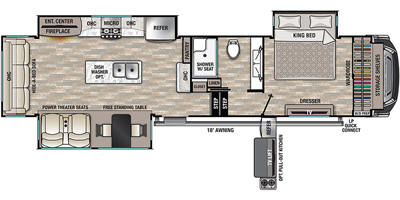 This Cedar Creek has an overall length of 37.08 feet and comes equipped with 3 power retractable slide-outs, 1 power retractable awning, 2 A/C units, a fireplace, and plenty of room to sleep 6. This unit has been well-maintained.