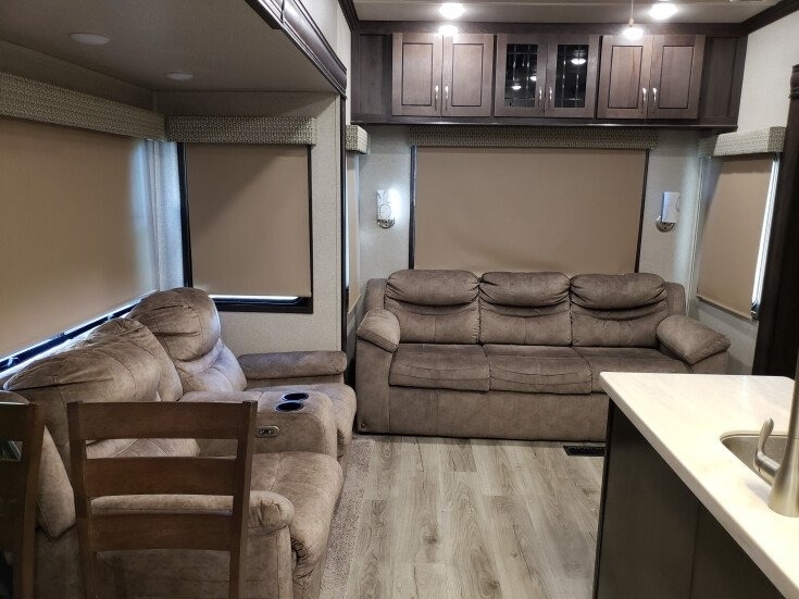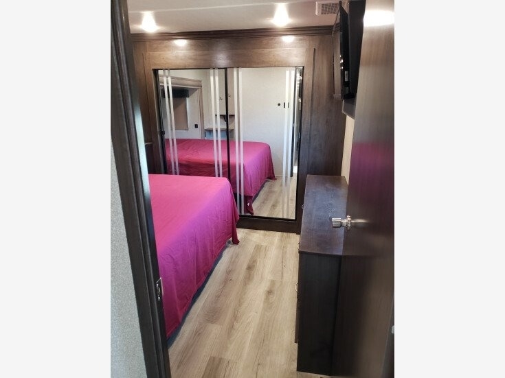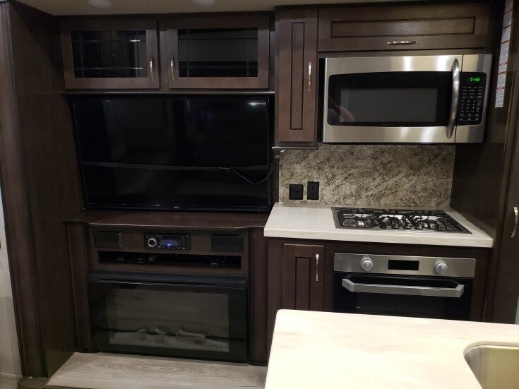 This 2019 Forest River has and overall length of 40 ft and comes equipped with 4 slide outs,1 awning, 2 AC units and plenty of room to sleep 7. This Travel Trailer has no Water Damage and has been Smoke Free since the date of purchase.