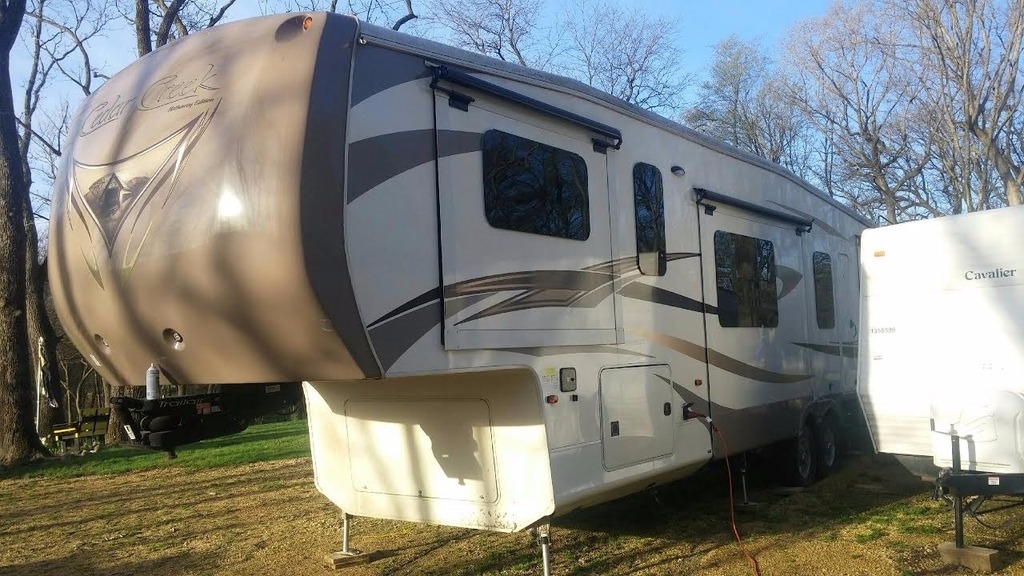 You won’t find another fifth wheel that pampers your needs with such style and grace as this Cedar Creek Hathaway Edition 5th Wheel. This 5th Wheel is 40-feet long, has 5 slide outs and 1 power retractable awning.