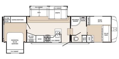 This 2015 Forest River Sabre has an overall length of 34 feet, comes Equipped with 2 Slide outs, 1 Awning, 1 A/C Unit (recently replaced) and Plenty of room to sleep 6-8.