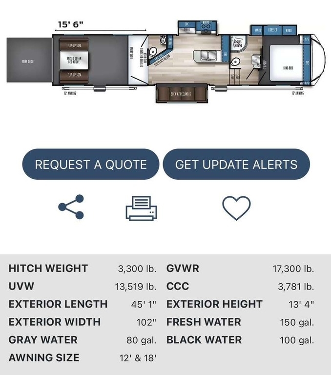 all length of 45ft and comes equipped with a 15ft garage with 30 Gal fuel