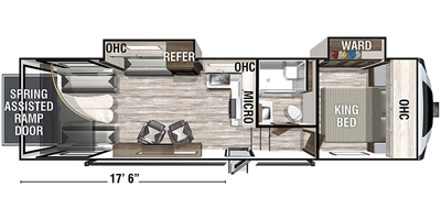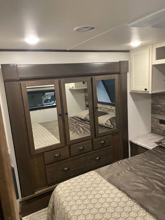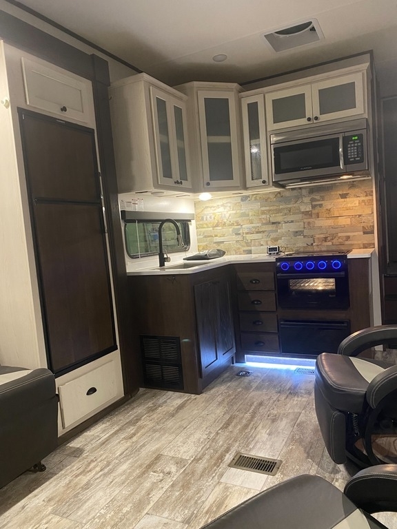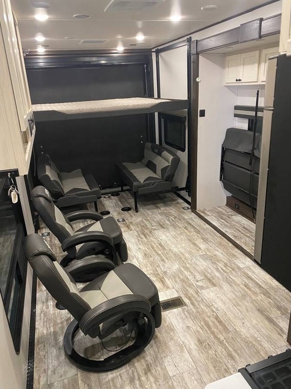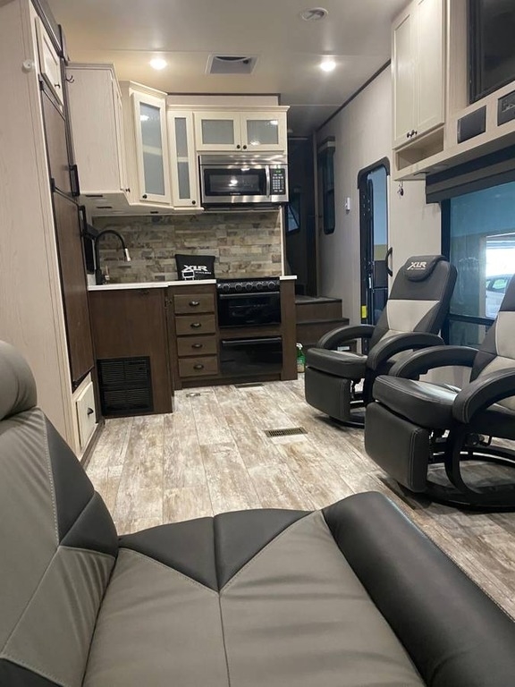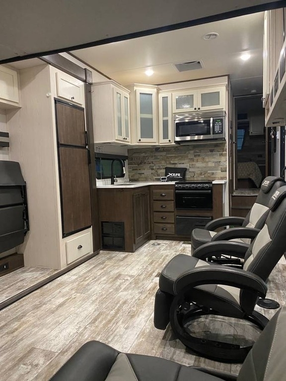 This Forest River is like new and barely used! The Overall Length is 35’ and it comes with a 17.5ft X 6ft Garage, 2 Slide Outs, 1 Awning, 2 AC Units and Plenty of Room to sleep 6.