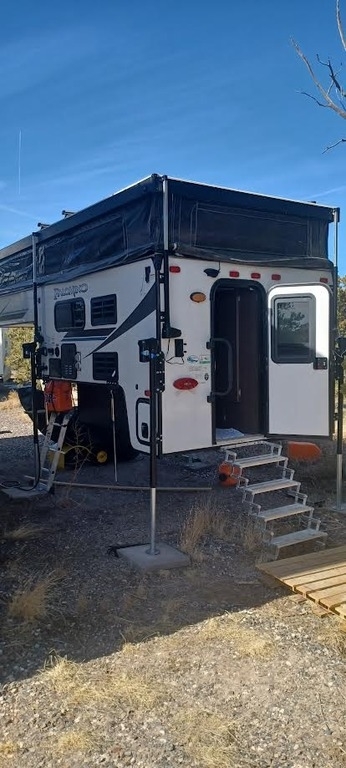 This Palomino has an overall length of 14.83ft and it comes with the truck bed width at wheel wells total of 47in, and the overall width is 86in. Also comes with 2-200amp Lithium Batteries and a Solar Charging System