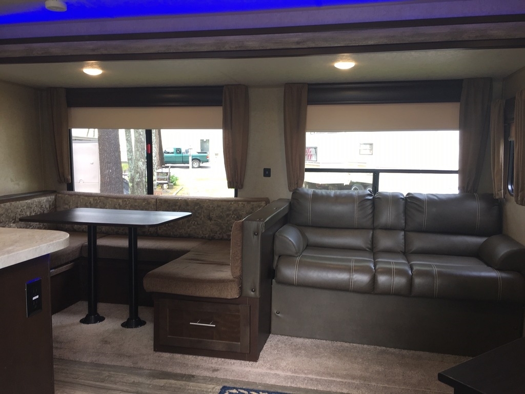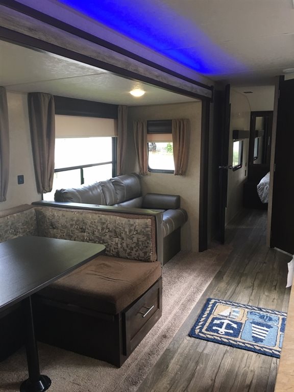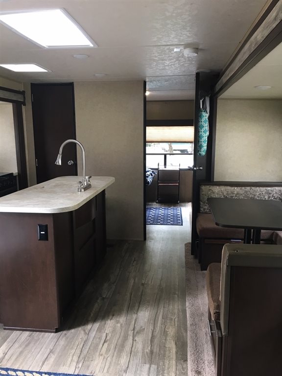 This 2017 Forest River Cherokee is 37 feet and comes with a Dinette Booth, has 3 Slide Outs and sleeps 8. This is a non-pet/non-smoking RV and there has not been any accidents or water damage.