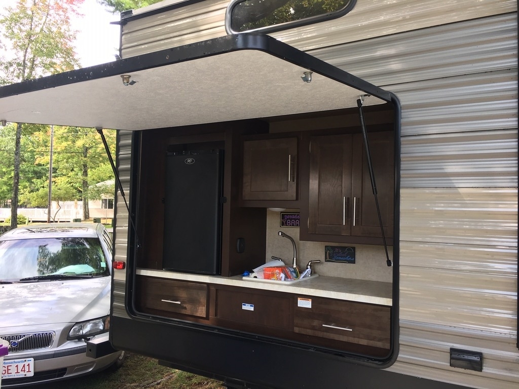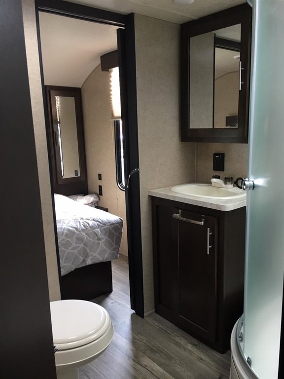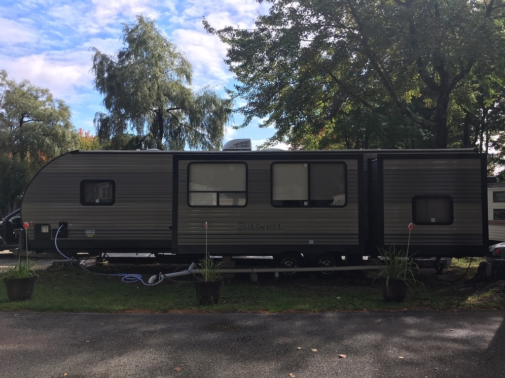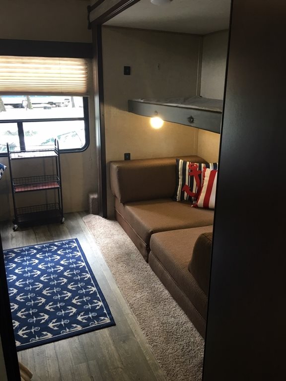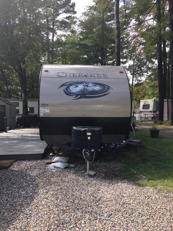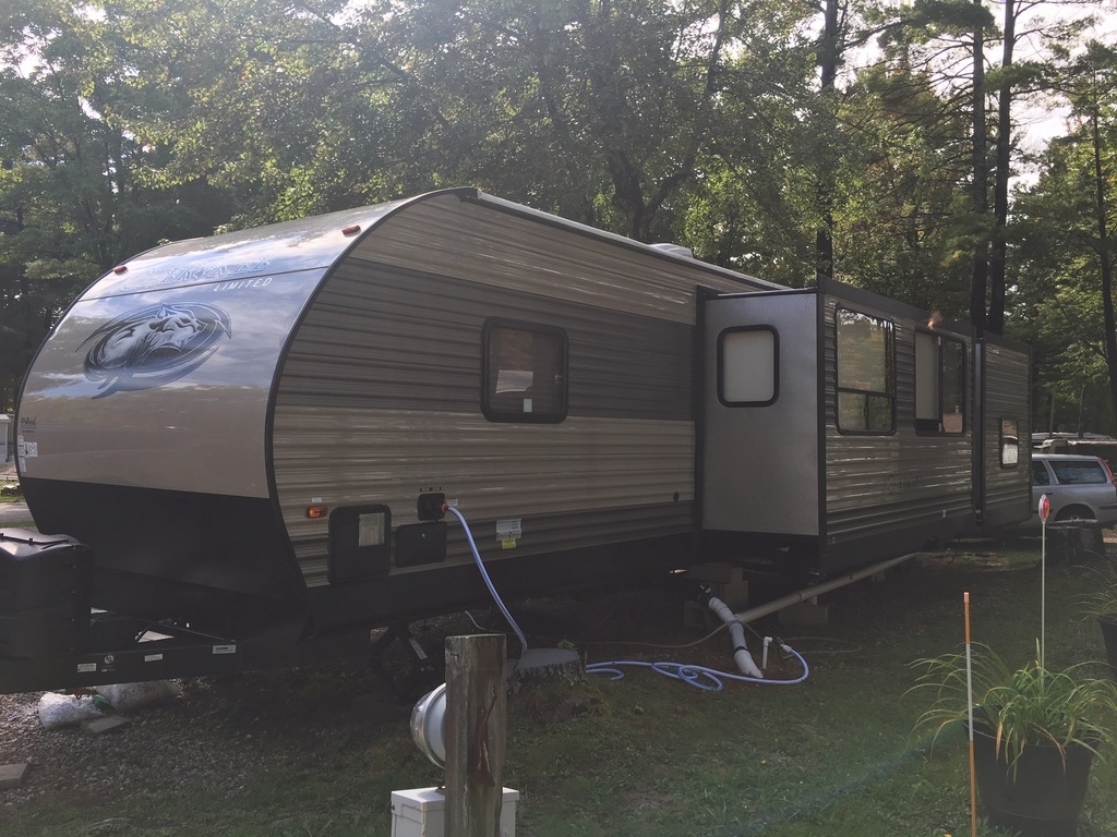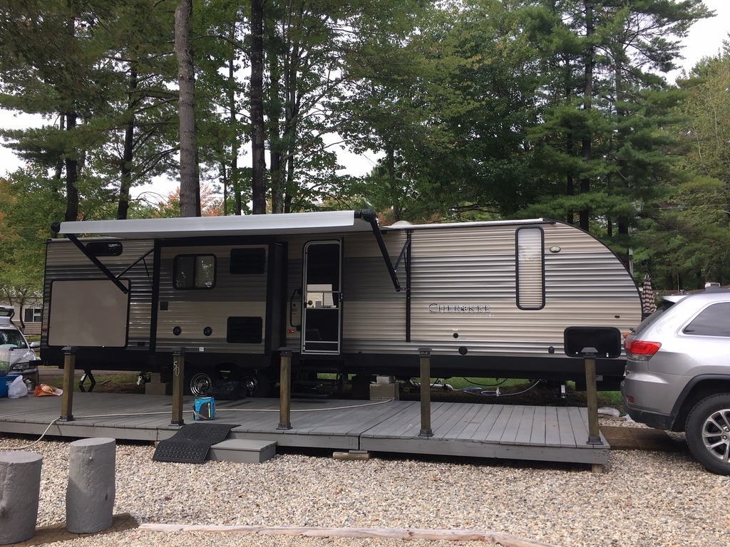 Seller's Note: It’s never been on the road. It was bought parked ASAP at a seasonal park in Maine. It is currently there, covered, and always winterized. If the buyer wanted to continue storing there, a $300 deposit is paid for 2019 so far. It has a fire pit set up, 40 foot deck and the whole lot has crushed rock on it. If the buyer would want to utilize this park, there is a application to be filled out and there would be a balance for the rest of the year due.