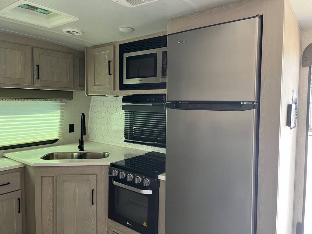 and day/night shades for added comfort. The kitchen is fully equipped with a