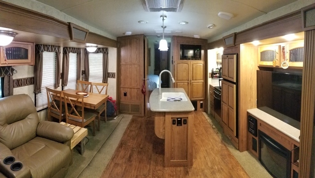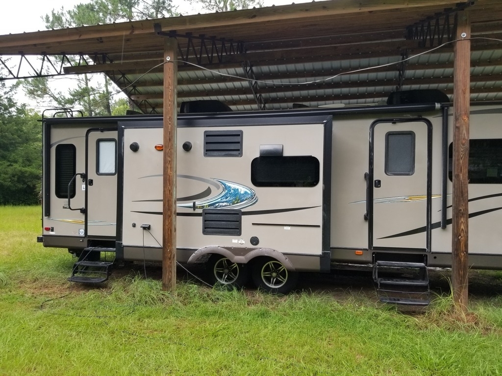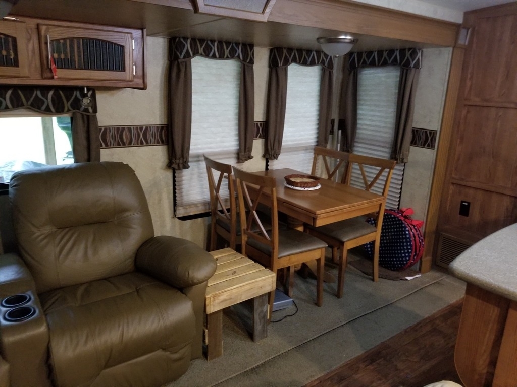This 2015 Forest River Flagstaff is 34 feet in length, has 3 Slide Outs and sleeps 4. This is a non-pet/non-smoking Travel Trailer and there has not been any accidents or water damage.