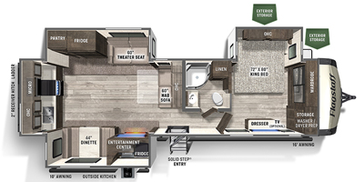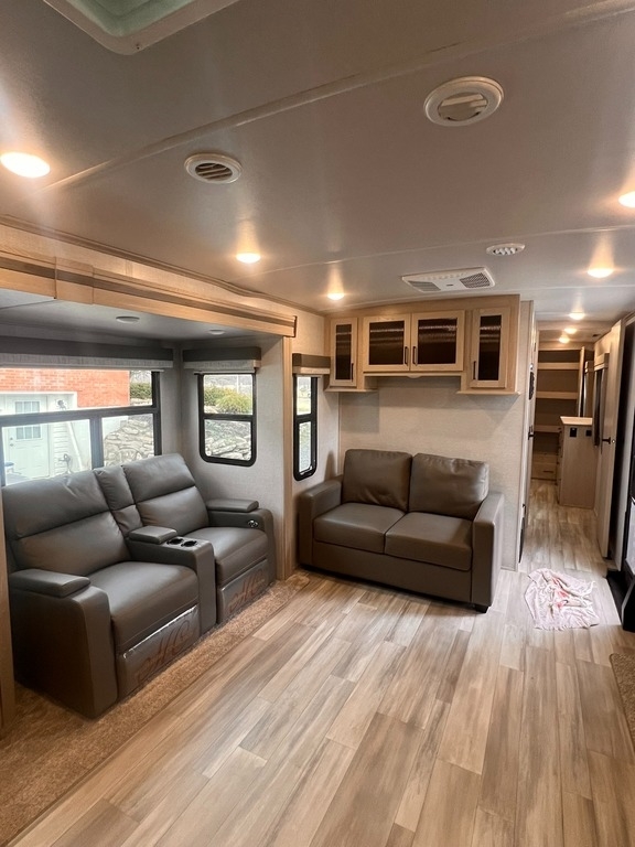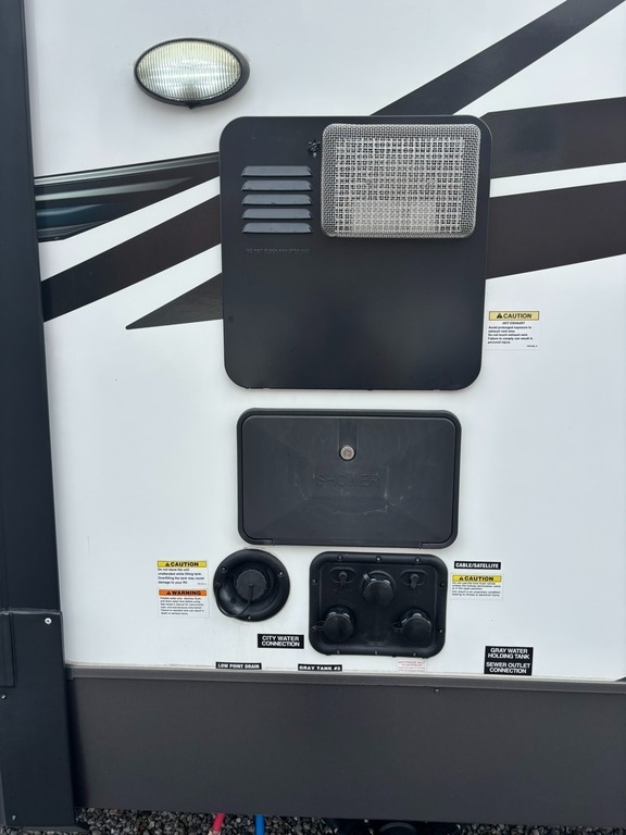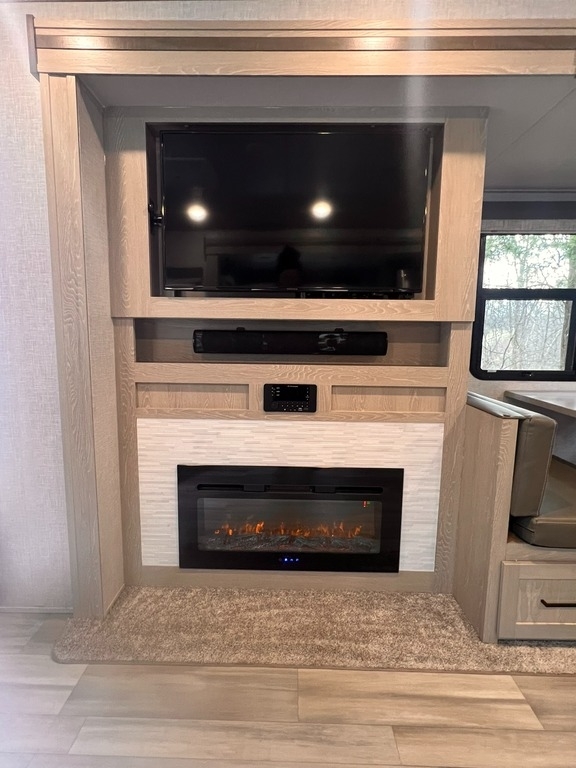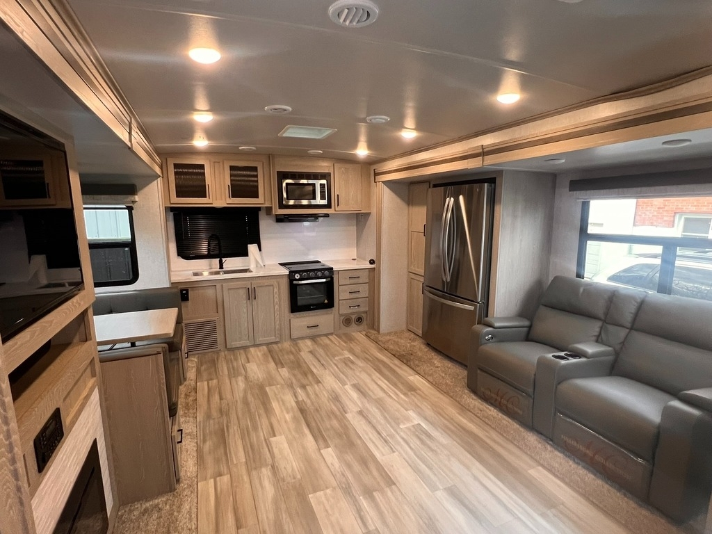 This Flagstaff Classic has an overall length of 36.67 feet and comes equipped with 3 power retractable slide-outs, 1 power retractable awning, 2 A/C units, a fireplace, an outdoor kitchen, and plenty of room to sleep 6. This unit has been well-maintained.
