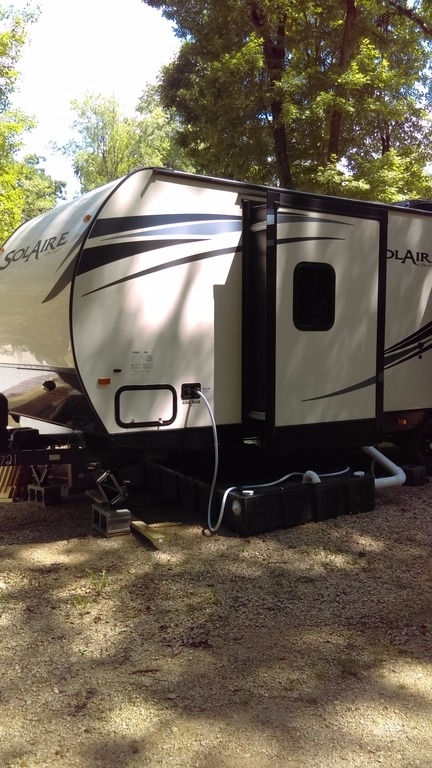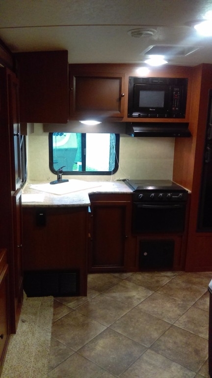 Everything is controlled by remote and has a Winegard Antenna hooked up. This unit was bought this year, June 2017, as a “left-over” floor model. Never previously titled or used. New owner, due to medical/handicapped accessibility has not been able to use the travel trailer.