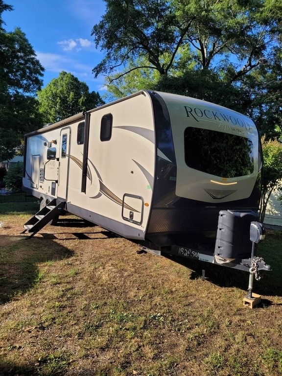 This 2020 Forest River Rockwood Ultra Lite 2912BS Travel Trailer has an overall length of 35.17 ft and comes equipped with 2 slide outs, a patio awning, 2 A/C units and comfortably sleeps 4-6 people.