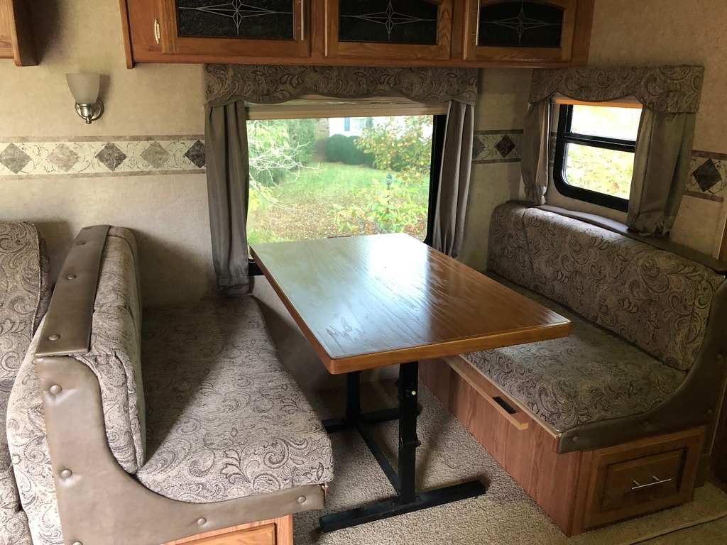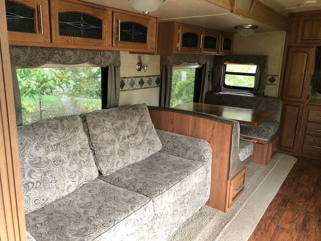 This 2014 Rockwood Signature has an Overall Length of 32 Feet and Comes Equipped with 2 Slide Outs, 1 Awning, 1 A/C Unit, and Sleeps 6. It is Shown in a Tan and Brown Exterior with an Earth Tones Interior. This is a Non-Smoking/Non-Pet Travel Trailer and has Not Been in Any Accidents or Had Any Water Damage.