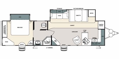 This 2014 Forest River is 36 feet and has 2 Slide Outs,1 awning and sleeps 6. This is a non-smoking RV and there has not been any accidents or water damage.