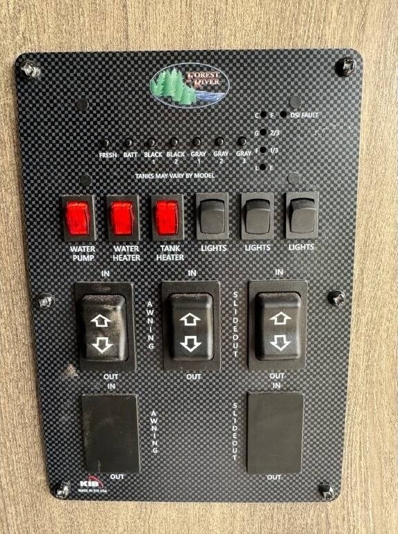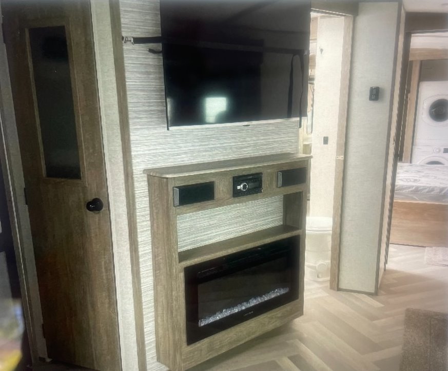 slide-outs, 1 power retractable awning, 2 A/C units, a washer/dryer, a fireplace,