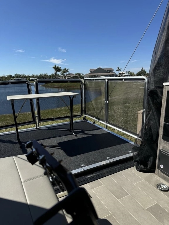 door, perfect for entertaining above ground. Inside, the two flip-down sofas