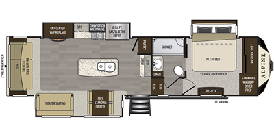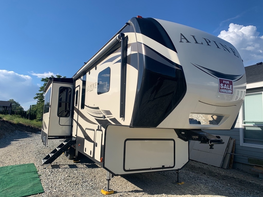 “2020 Keystone Alpine 34RS Fifth Wheel, a perfect blend of luxury and functionality for your camping adventures. This spacious fifth wheel features a well-designed layout with a comfortable living area, complete with plush seating and a cozy fireplace, ideal for relaxing after a day of outdoor activities. The gourmet kitchen is equipped with modern appliances, ample counter space, and a large pantry, making meal preparation a breeze. The master bedroom offers a peaceful retreat with a comfortable king-sized bed and plenty of storage options, while the bathroom features a spacious shower and upgraded fixtures. With high-quality construction and stylish finishes throughout, this Keystone Alpine is both durable and inviting. Whether planning a weekend getaway or a long-term adventure, this fifth wheel is ready to provide comfort and convenience on the road.”