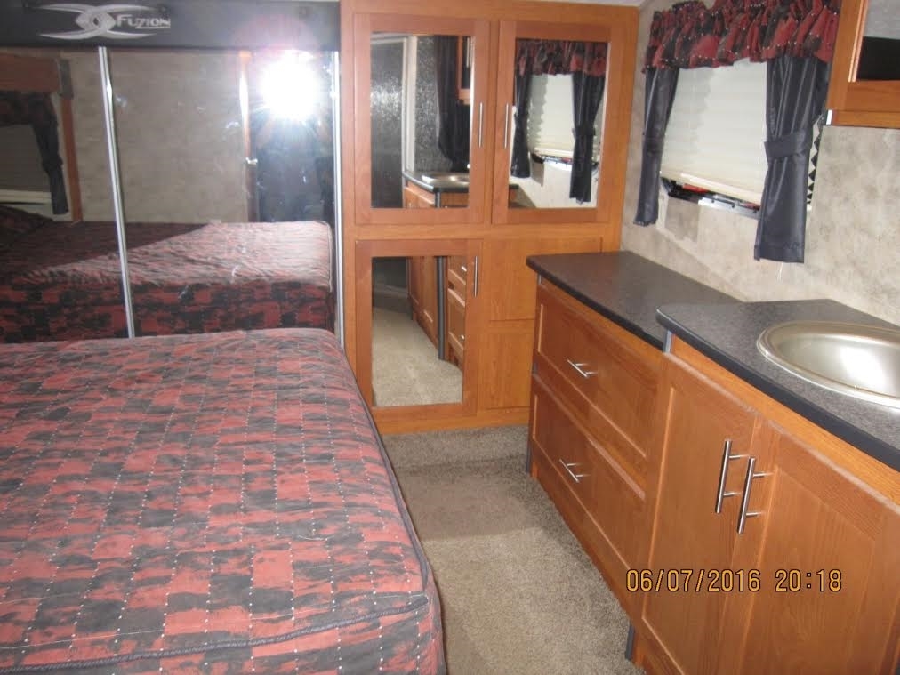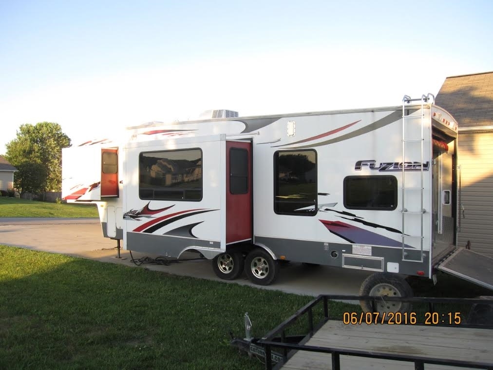 This Toy Hauler is heaven compared to roughing it. Your new home away from home is awaiting! Start your traveling adventures today in this beautiful 2009 Keystone Fuzion FZ302. This 35 Foot Toy Hauler has a beautiful White with Decal exterior with earth tone colors for the interior. This Toy Hauler has been meticulously maintained inside and out and has never been smoked in.