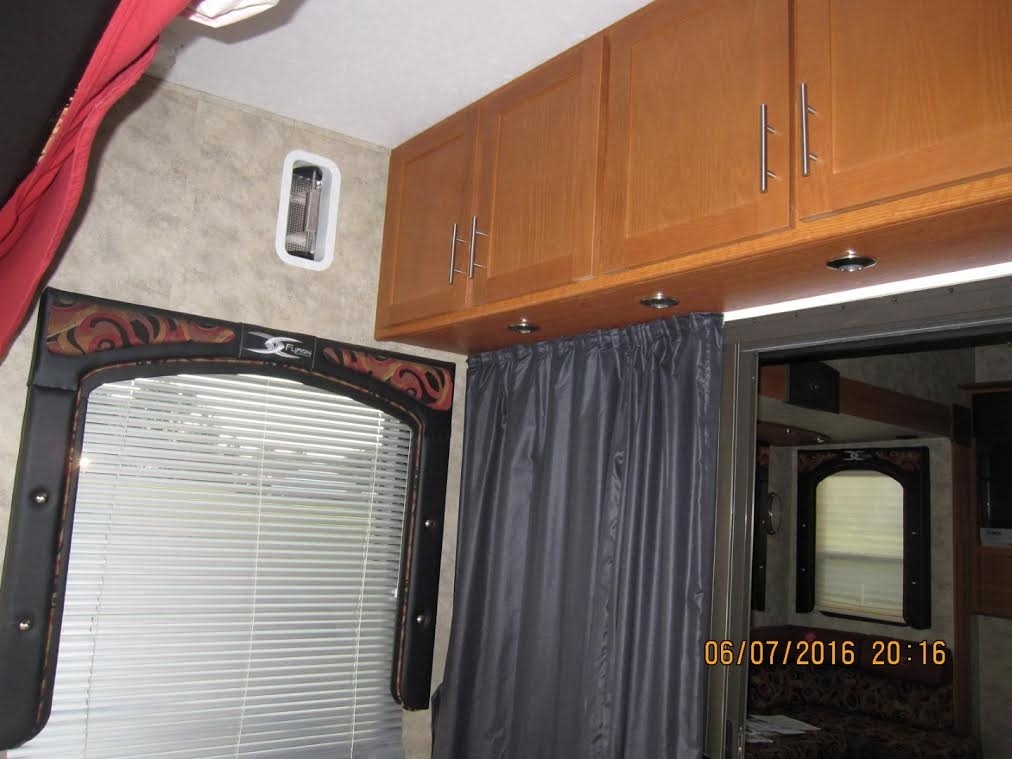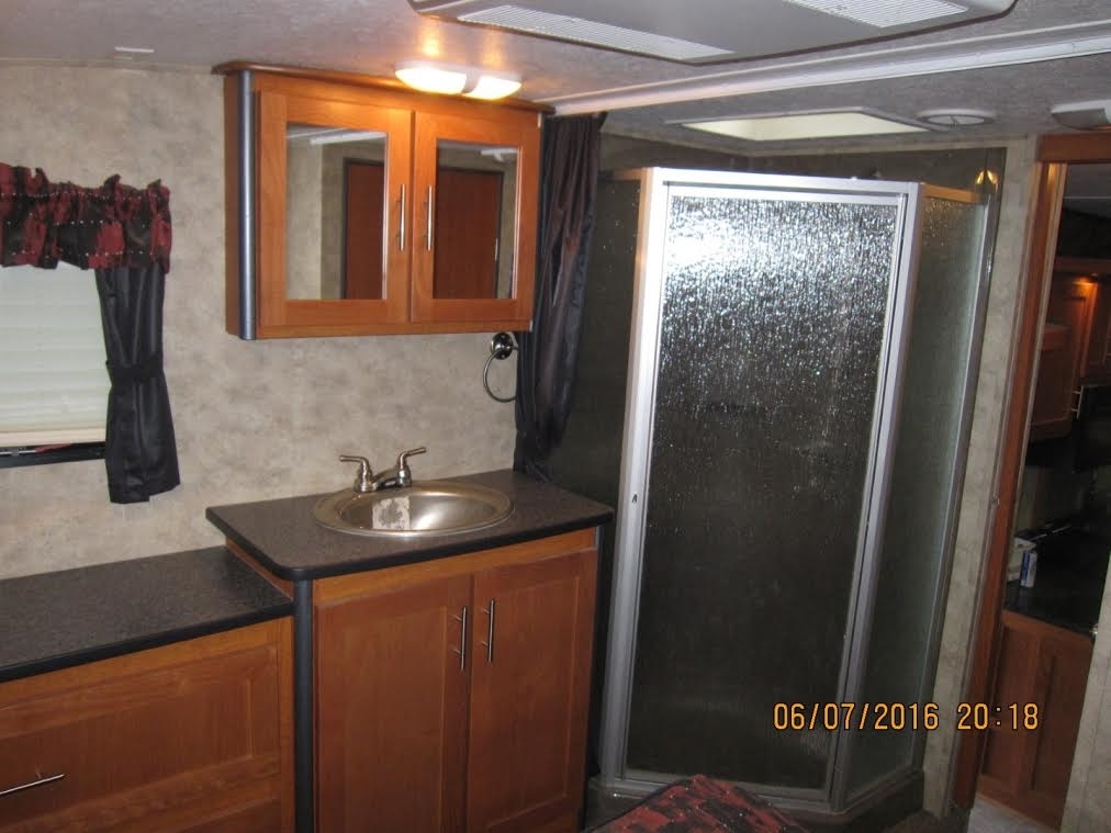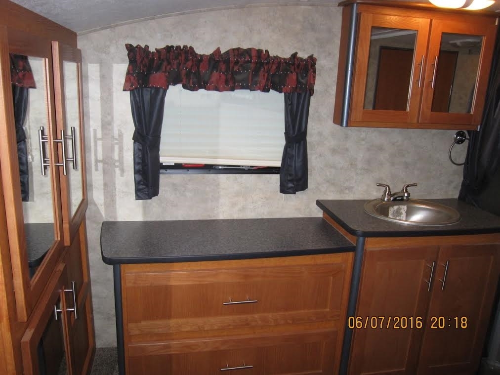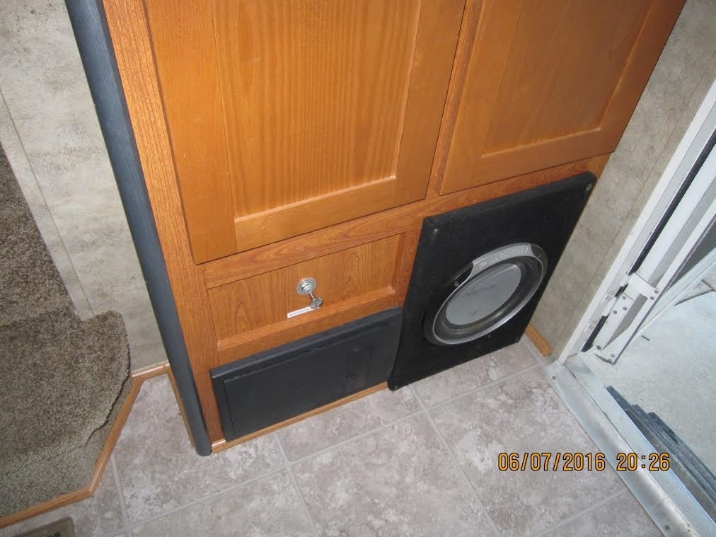 Seller added a TV with built in DVD inside of cabinet in garage part for kids. Camper has factory washer hook up.
