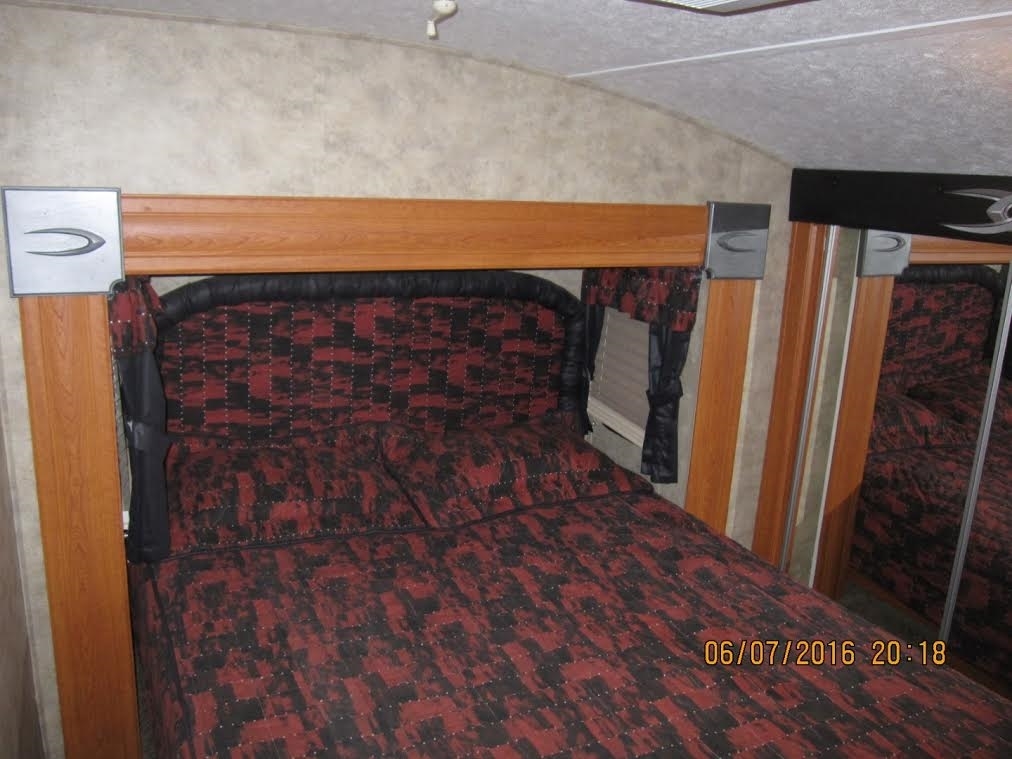 Sellers washed and conditioned the roof every year. It was waxed outside once a year. Unit is in excellent shape with what the seller would call less than average cosmetic issues than normal. Last year the decal was peeling and Keystone agreed to supply the decals, but we paid to have all old one stripped and new ones put one. So all decals where replaced all expect about 4 that they left out. The small door to the auxiliary fuel has bubbling in the paint. Seller assumes the fumes caused it. The couch vinyl is peeling. These are the only issues with the whole unit.