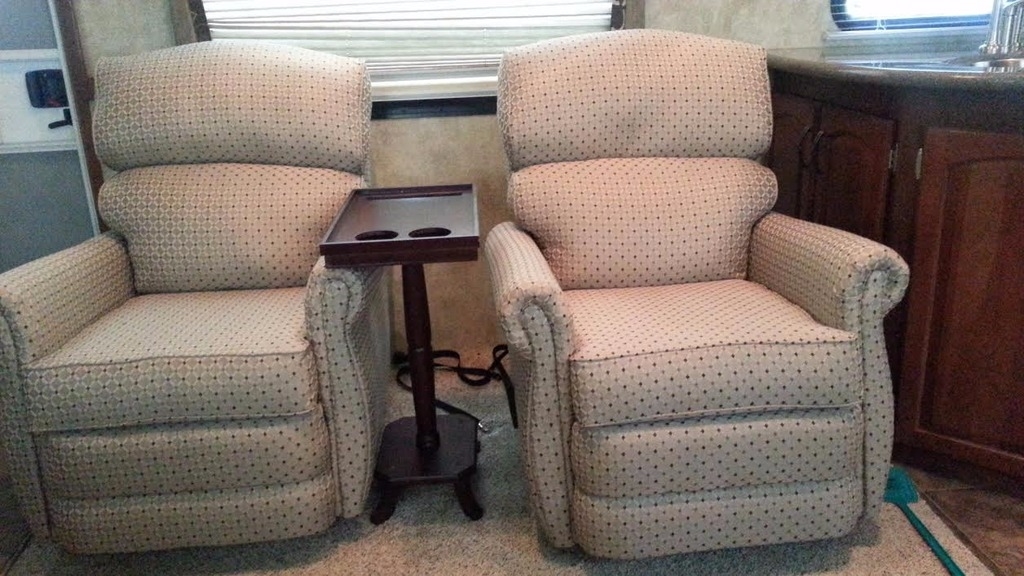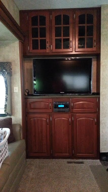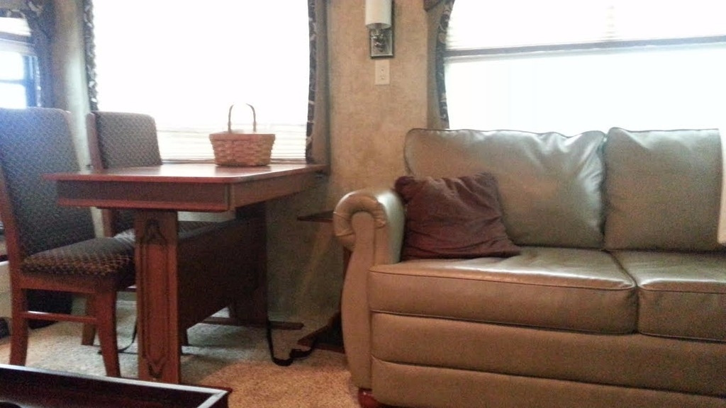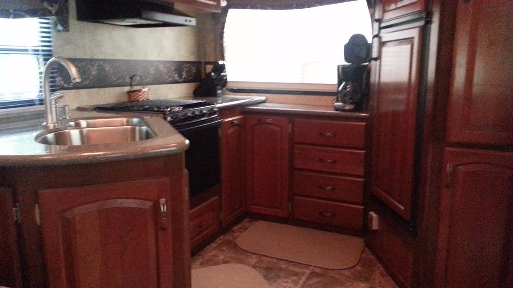 The Kitchen has Corian Counter Tops, 3 Top Stove, Freezer, Refrigerator, Microwave, Double Sink, and Table with Chairs. The Living Room is Cable Ready, has CD/Stereo System, Television, Satellite Dish Hookup, Surround Sound, DVD, 2 Chairs and a Sofa Sleeper. Other great features include: Inside Shower with Bath and Outside Shower, Queen Size Bed, Storage Dresser, Mirrored Wardrobe, Dark Tinted Windows, Thurmo Shield 37, Day/Night Shades, Basement Storage, Furnace, Hitch, Smoke Detector, and much more!