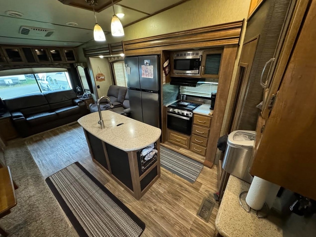This Keystone has an overall length of 36 feet and comes equipped with 3 power retractable slide-outs, 1 power retractable awning, and plenty of room to sleep 4. This unit has been well-maintained.