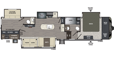 2019 Keystone Laredo 367BH fifth wheel has an overall length of 39.75 feet and