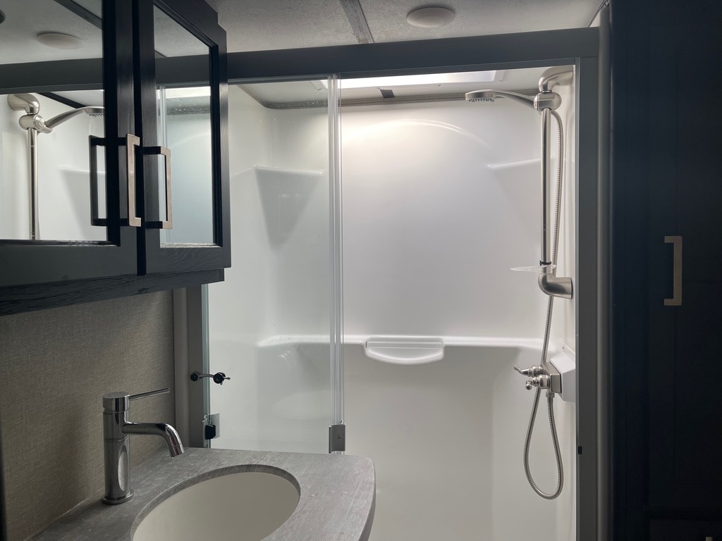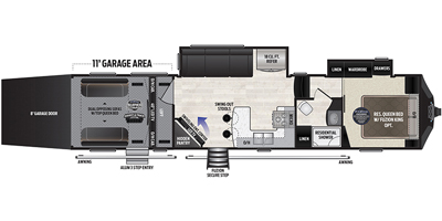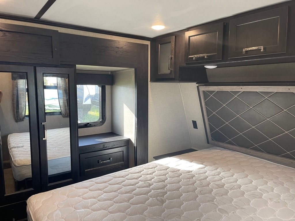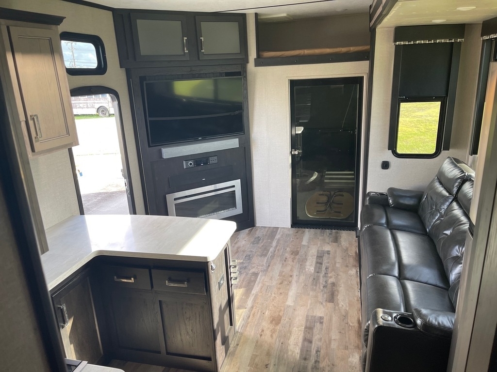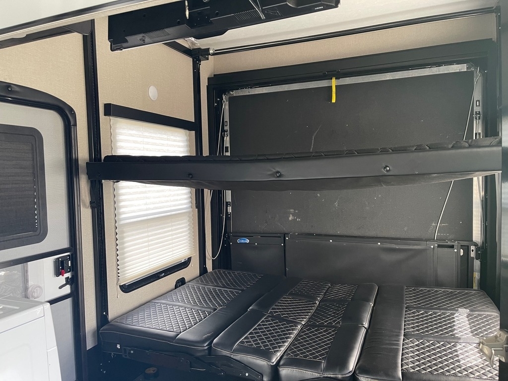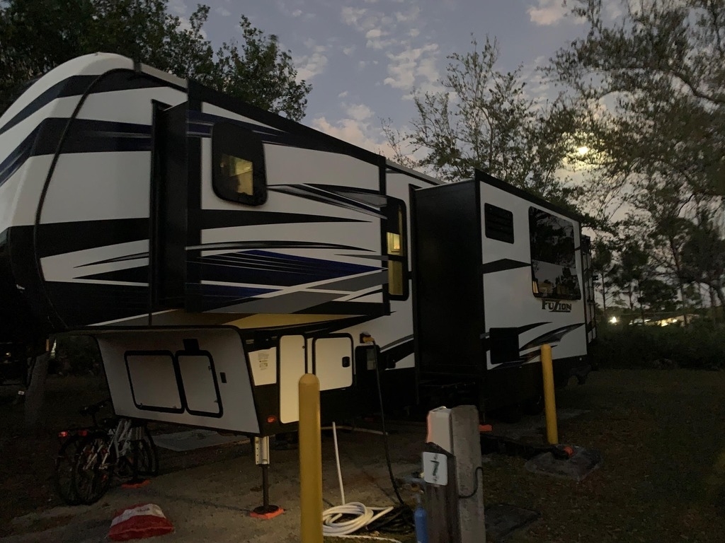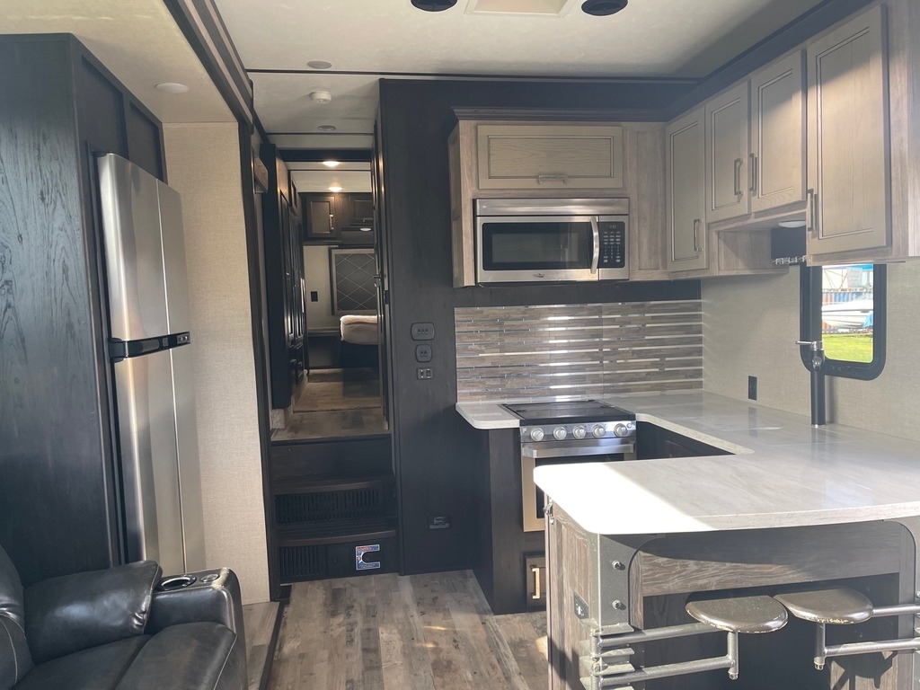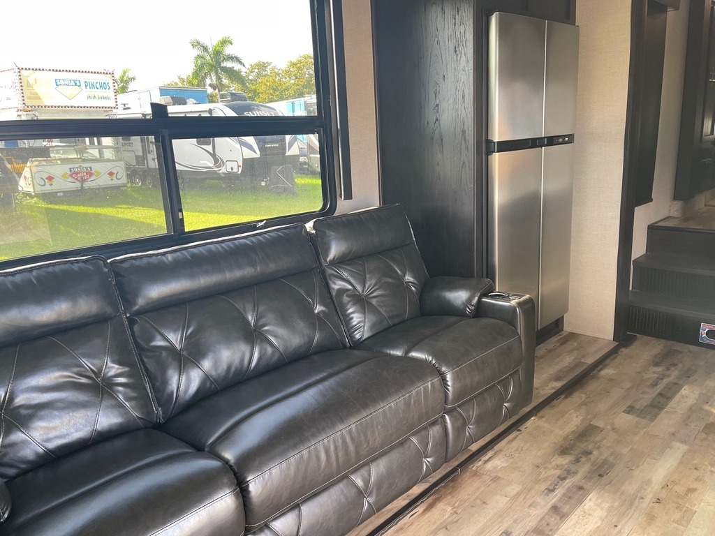 This 2019 Fuzion has an overall length of 39 feet and comes equipped with a Generator, 2 Slide Outs, 3 Awning, 3 A/C units and plenty of room to sleep 8.