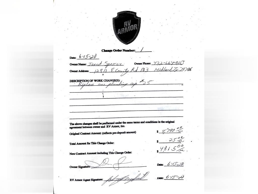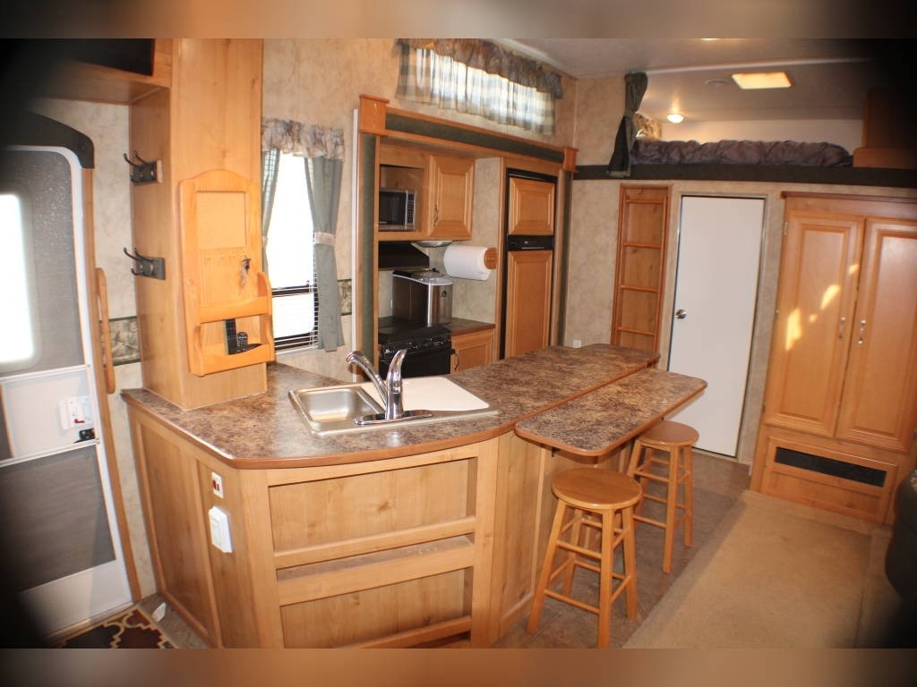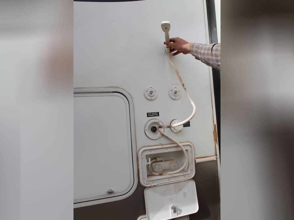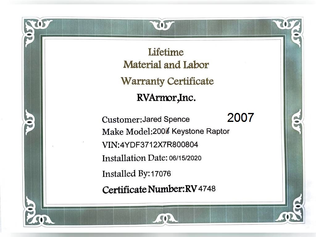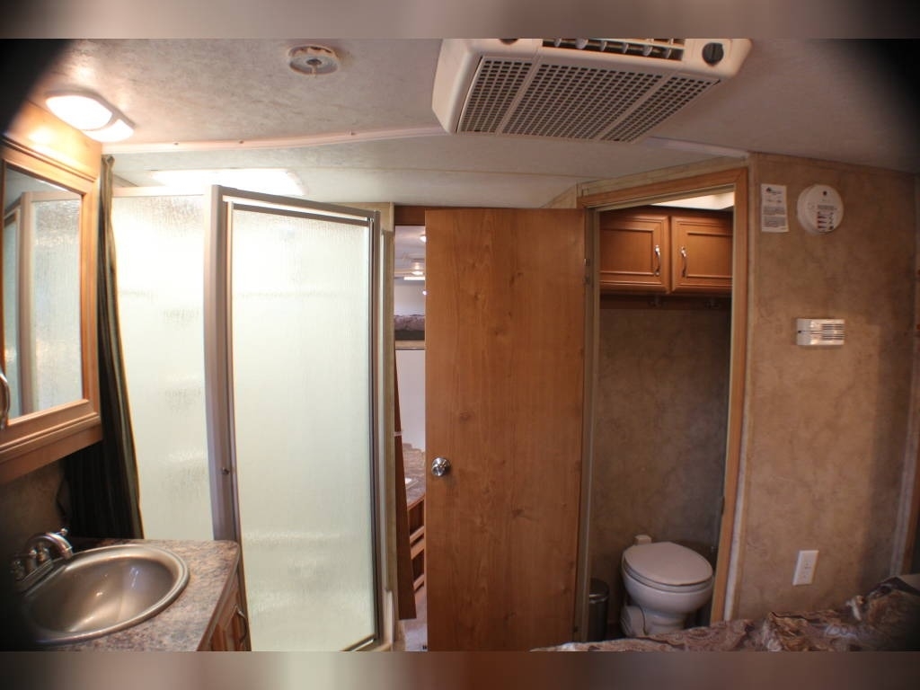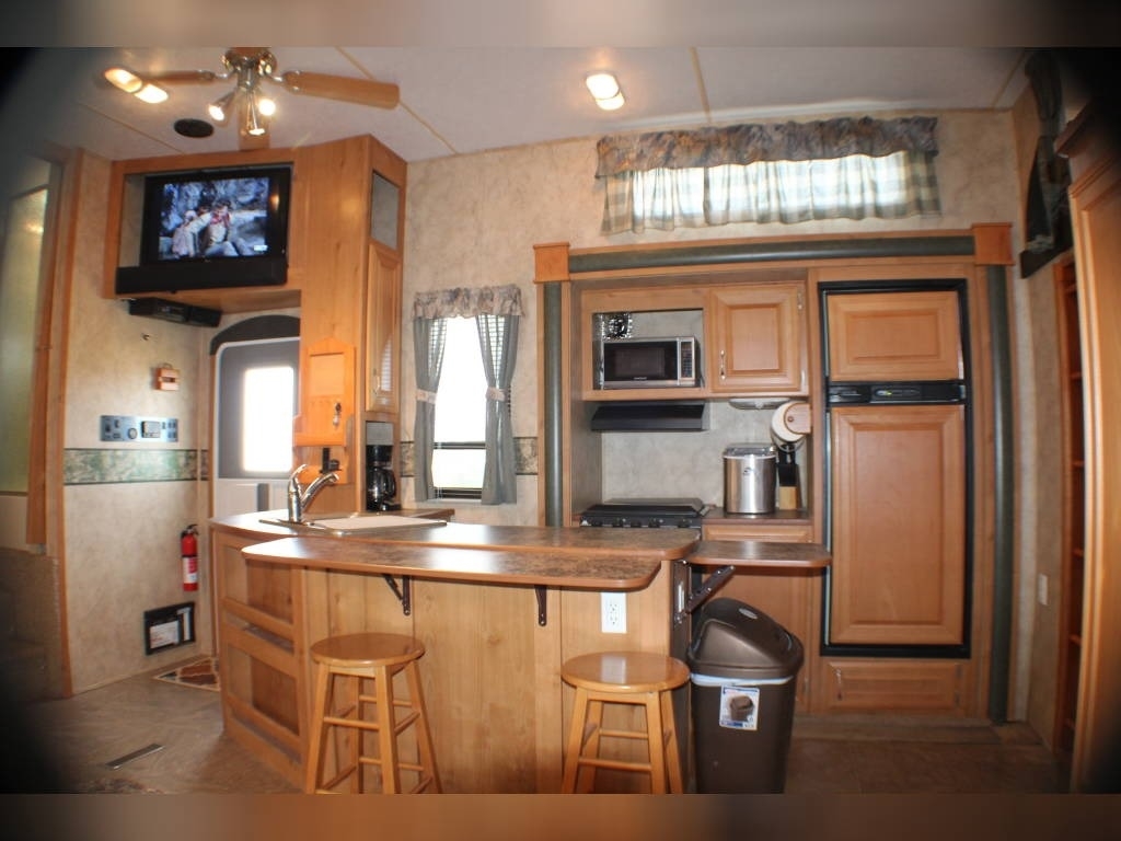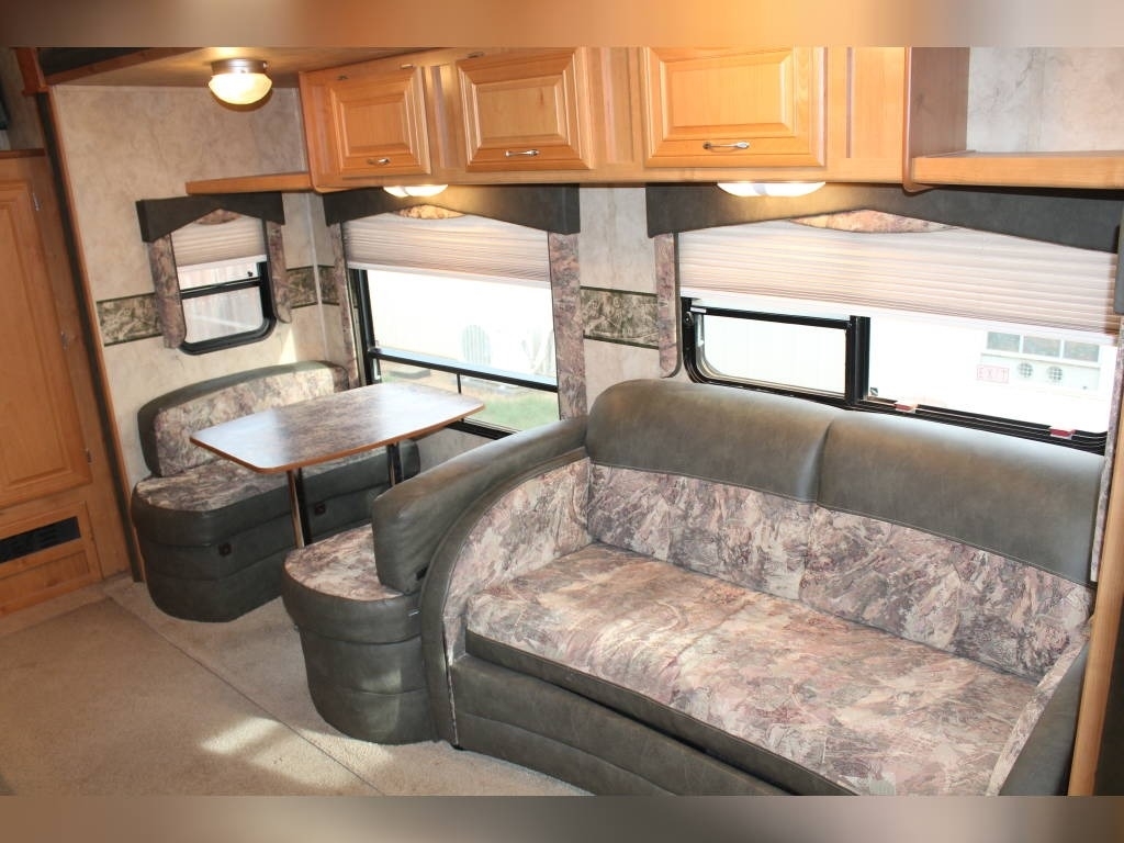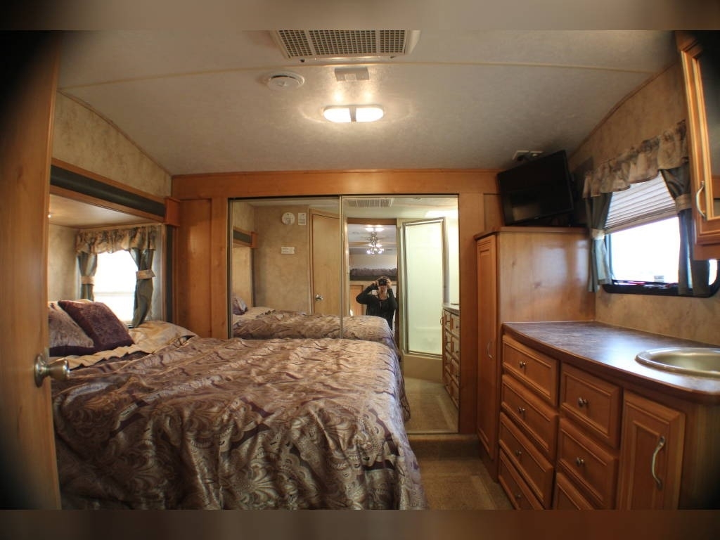 Per Seller - All mechanics and appliances in working order. Hot water heater and Refrigerator will run on propane or electric power. Dual propane bottles were bought new 1 year ago. New roof from RV Armor with Lifetime Warranty. Warranty is based on vin of trailer not owner. Slight damage due to blown tire from previous owner and is strictly cosmetic (pictures reflect). Camper is equipped with onboard Onan generator-623 hours. On board fuel station for toys and generator. Camper has 6 new 14 ply tires with less than 2,000 miles. Awning will extend and retract but canvas will need to be replaced due to sun damage. Outdoor shower. Carpet like new. Minimal if any cosmetic damage to interior. Mattress are included but bedding and dishes will be removed before sale closes. Trailer is set up with goose neck adaptor and can be removed for traditional 5th wheel. Clean title in hand.