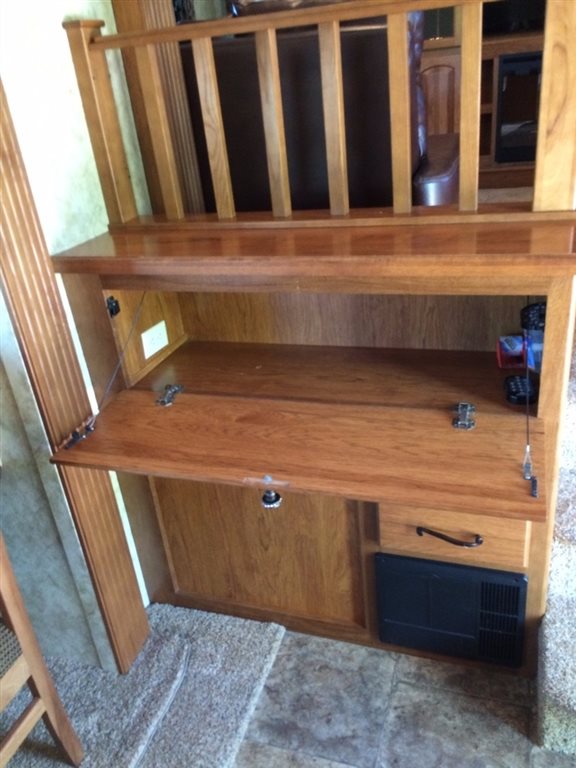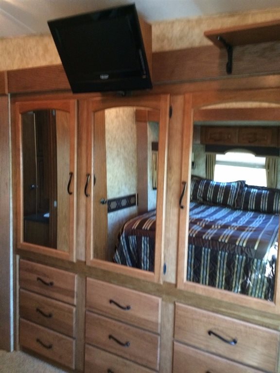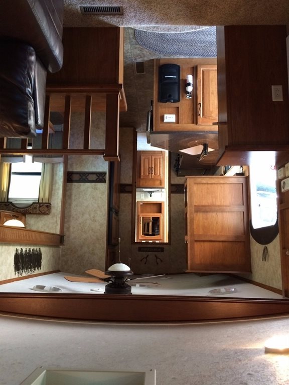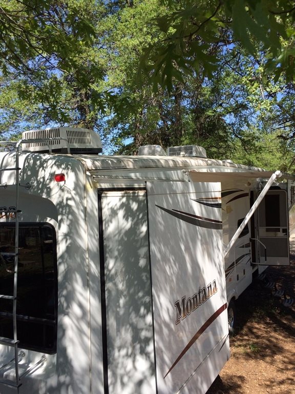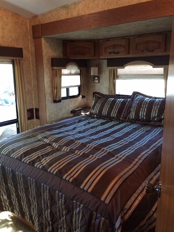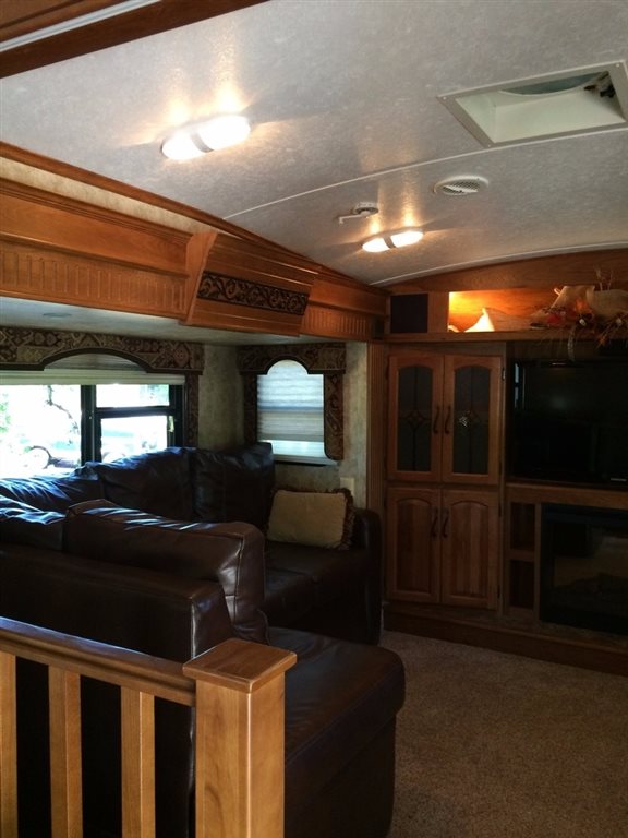 This Keystone is 39-feet in length, has 5 slides, 1 power retractable awning, 2 A/C units and it sleeps 4. This unit is shown in a White exterior and Cream and Brown interior. This unit has had no pets, no water damage and has been smoke-free.