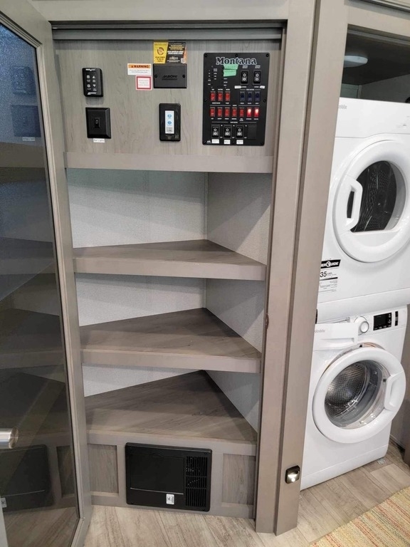 Also Includes 2 TVs With a Hook-Up for Outdoor TV, Fireplace, Built-In DVD, Stereo, And a 2-Person Desk. Other Amenities Include a Stacked Washer and Dryer, Large Shower, Keyless Entry Lock, and many Additional Upgrades! (Too Numerous to List)