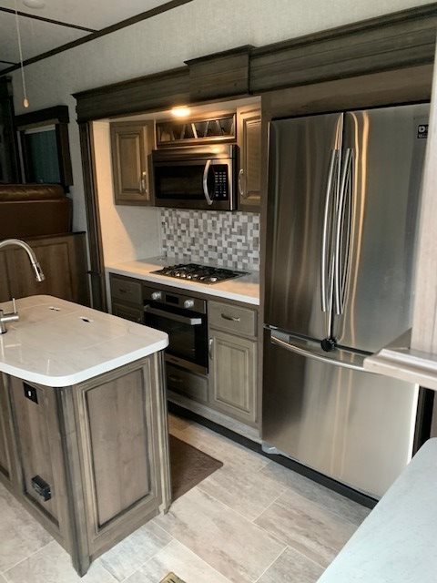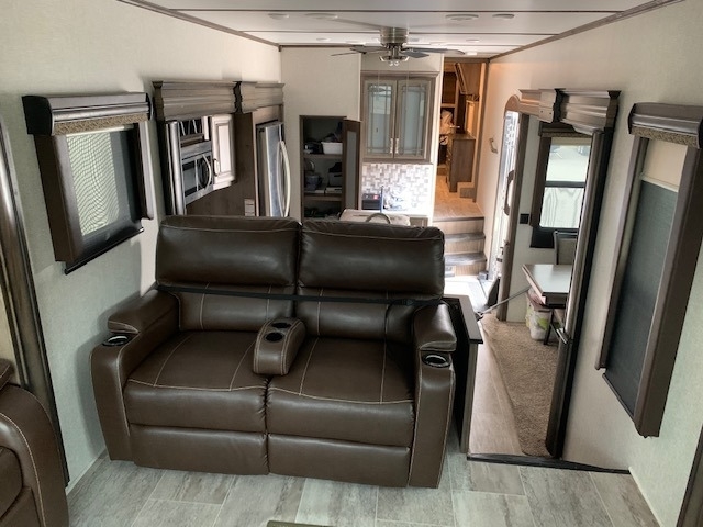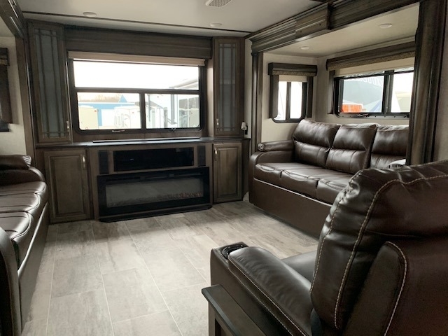 This 2019 Keystone Montana has an overall length of 40 feet and comes equipped with 4 Slide Outs, 1 Awning, 2 A/C units and plenty of room to sleep 6. 1-Year and 10 Months of Factory Warranty Remaining!