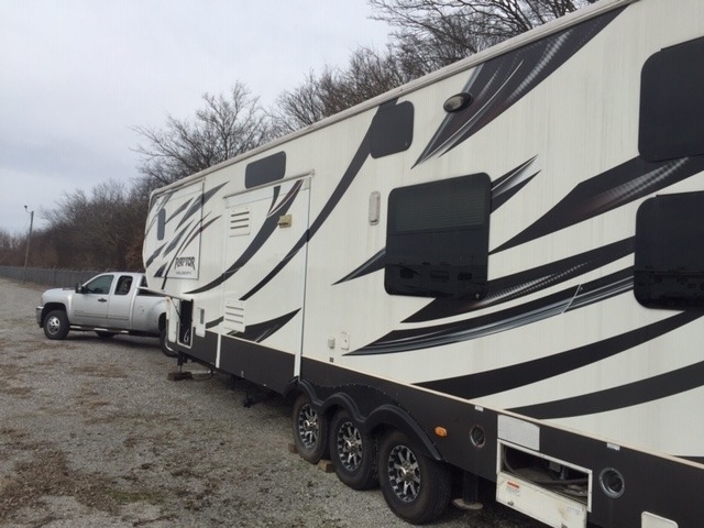 This 2013 Keystone Raptor has an overall length of 41’ 7” and comes equipped with an Onan 5500 Diesel Generator, 3 Slide Outs, 2 Power Retractable Awnings, 2 A/C units and plenty of room to sleep 7.