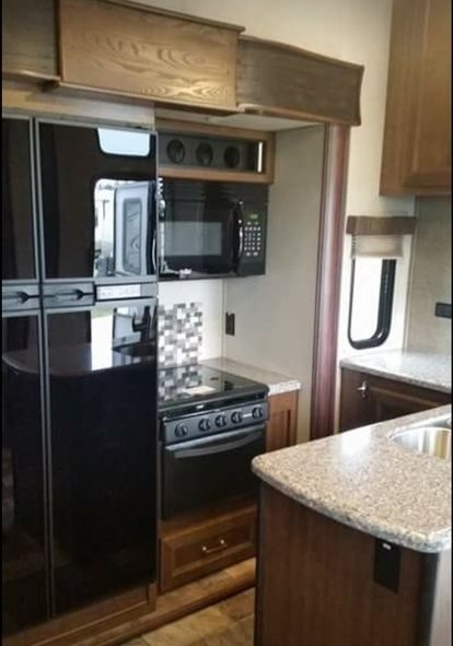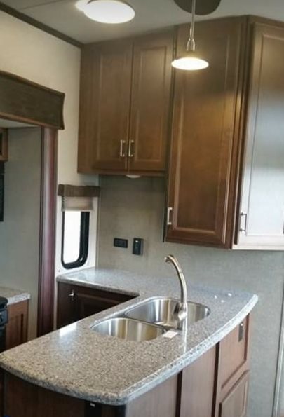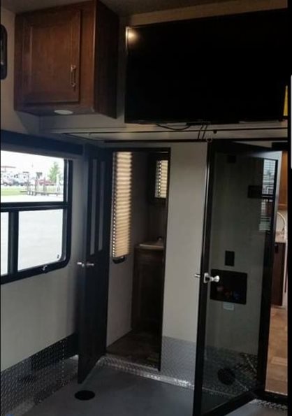 This 43-foot Toy Hauler comes fully equipped with 1.5 bathrooms, 3 slide outs, 2 awnings, 2 A/C units and sleeps 7.