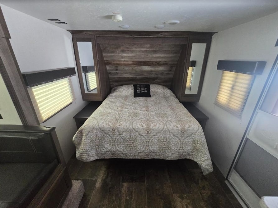 This Keystone has an overall length of 22.75 feet and comes equipped with 1 power retractable slide-outs, 1 power retractable awning, and 1 A/C unit installed. Plenty of room to sleep 4. This unit has been lightly used and very well maintained.