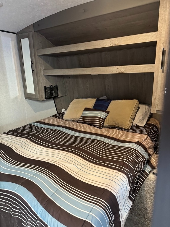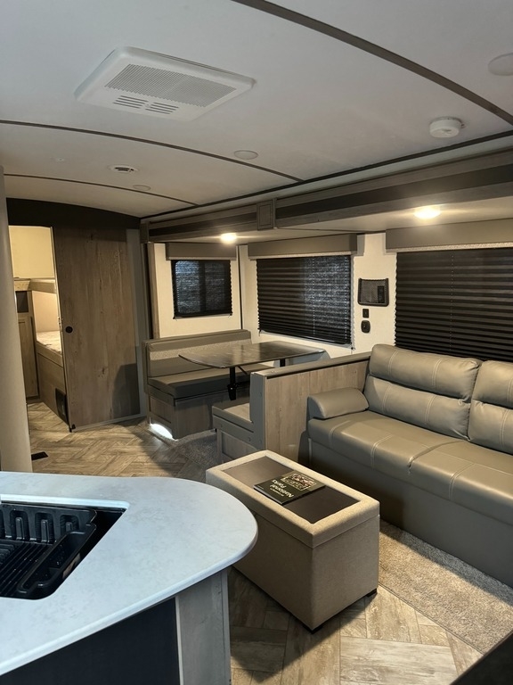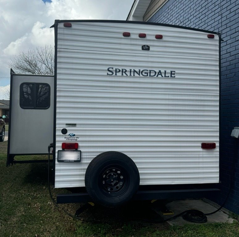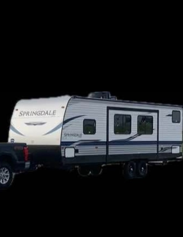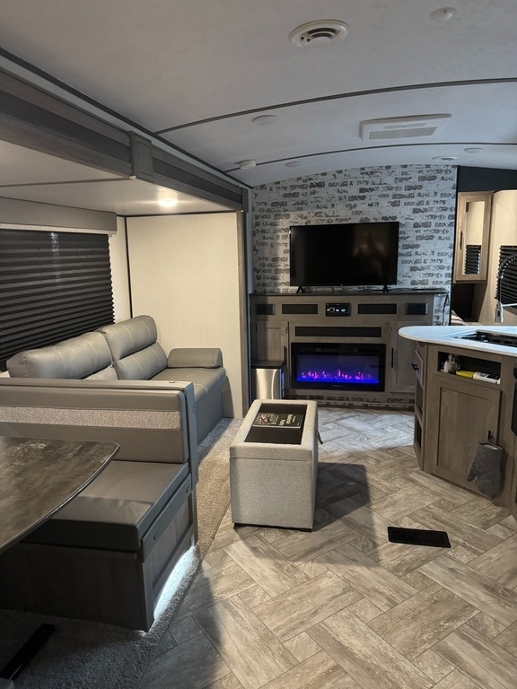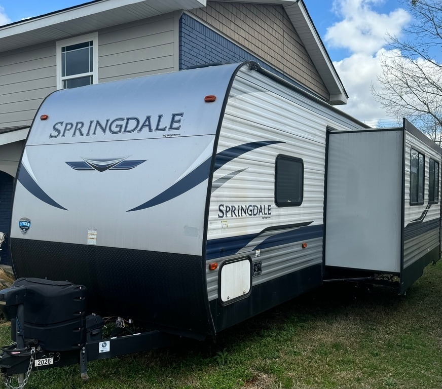 “This 2021 Keystone Springdale 298BH Travel Trailer is a one-owner unit in fantastic condition, perfect for family camping and adventures. Featuring a spacious bunkhouse with 4 bunk beds, it comfortably sleeps multiple guests. The Arctic package adds extra insulation for year-round camping, while an added auxiliary ceiling-mounted AC/heat unit in the front bedroom ensures comfort no matter the season. For added convenience, an on-demand water heater has been installed, ensuring hot showers whenever you need them. The main room features upgraded central air, and the lighted fireplace creates a cozy ambiance. Inside, there is a mounted TV in the bedroom and sleek grey interior decor. Outdoor living is just as impressive with an exterior shower, refrigerator, and cooking area, perfect for meals under the stars. The RV also comes with an anti-sway tow package for a smoother towing experience. Driven approximately 6,000 miles, this travel trailer is ready for its next adventure!”