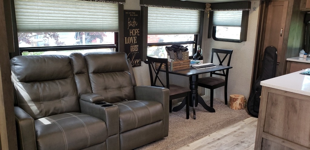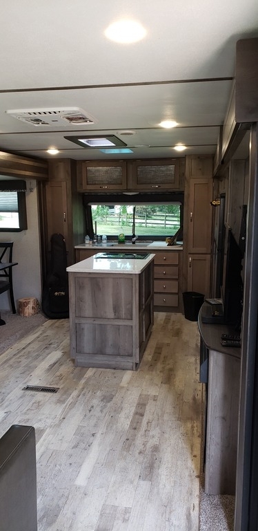 This 2019 Travel Trailer has an overall length of 37.75 feet and comes equipped with 3 Slide Outs, 1 Awning, 2 A/C unit and plenty of room to sleep 6.