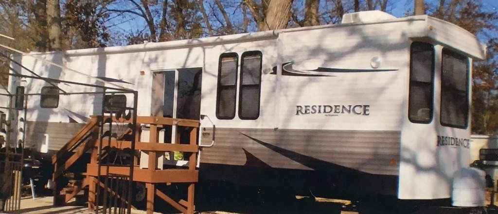 Enjoy  spending time in this 2012 Keystone Residence 406FB destination travel trailer with two  entry doors and features triple slides, a front bedroom, and a bath and a half  for added convenience.