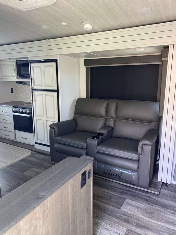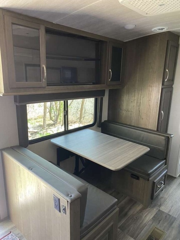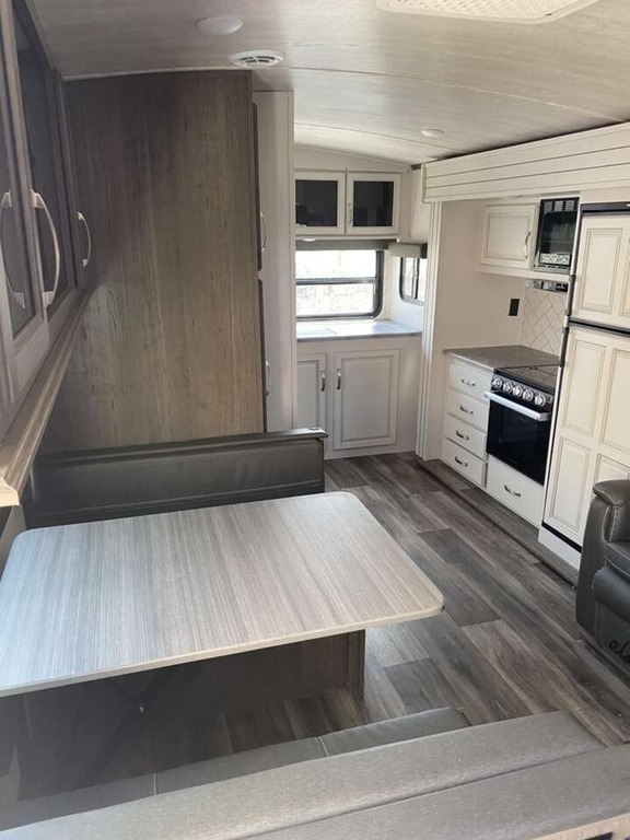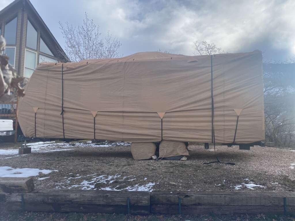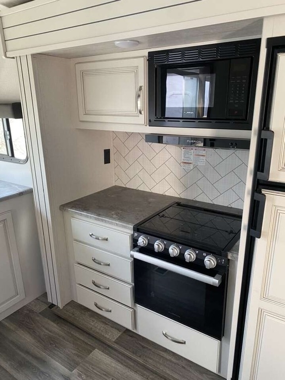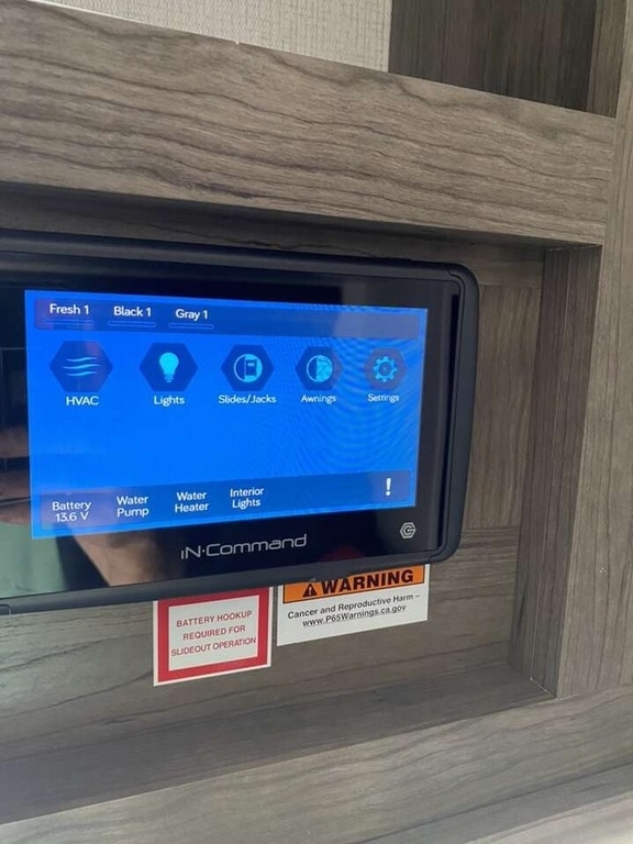 storage; 35000 btu furnace; 15000 BTU AC; 18’ electric awning; 3 cooktop